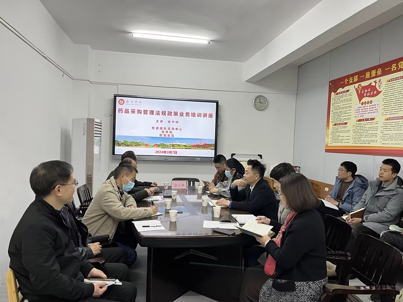 为进一步规范药品采购行为,增强防范化解采购领域重点风险能力,提升用户部门、采购人在采购药品的业务本领,3月7日下午,我校在医学院附属医院三楼会议室举行药品采购管理法规政策业务培训讲座,特别邀请韶关市第一人民医院药学部主任余干林来校授课指导。