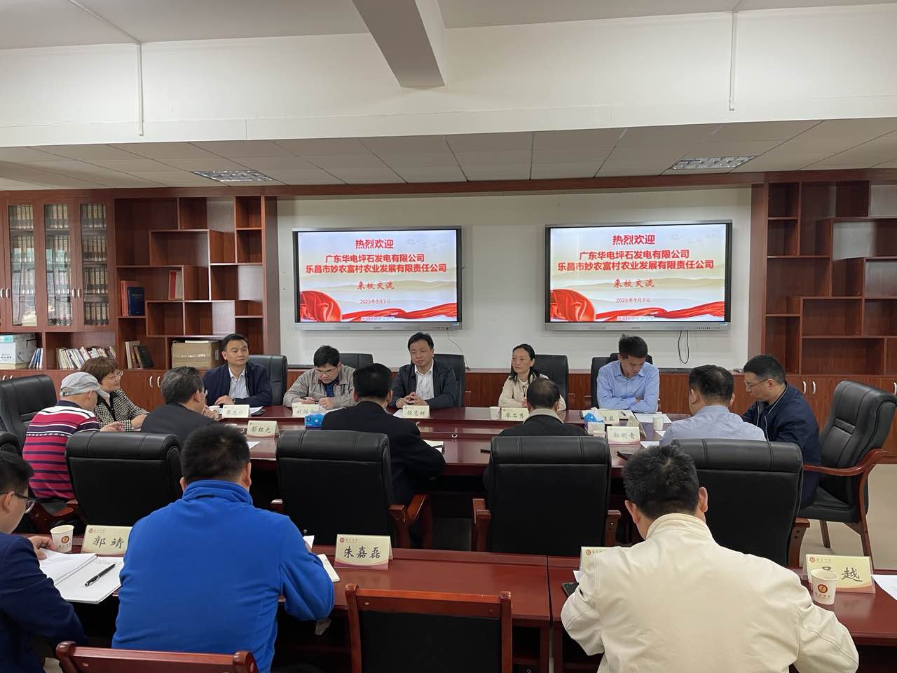 3月7日下午,省人大代表、广东华电坪石发电公司党委书记顾志祥一行来校洽谈校企合作事宜。省人大代表、乐昌市妙农富村农业发展有限责任公司董事长廖石秀,我校地方合作与服务工作办公室主任吴炜民、英东生物与农业学院副院长刘主和项目组团队成员出席座谈会。