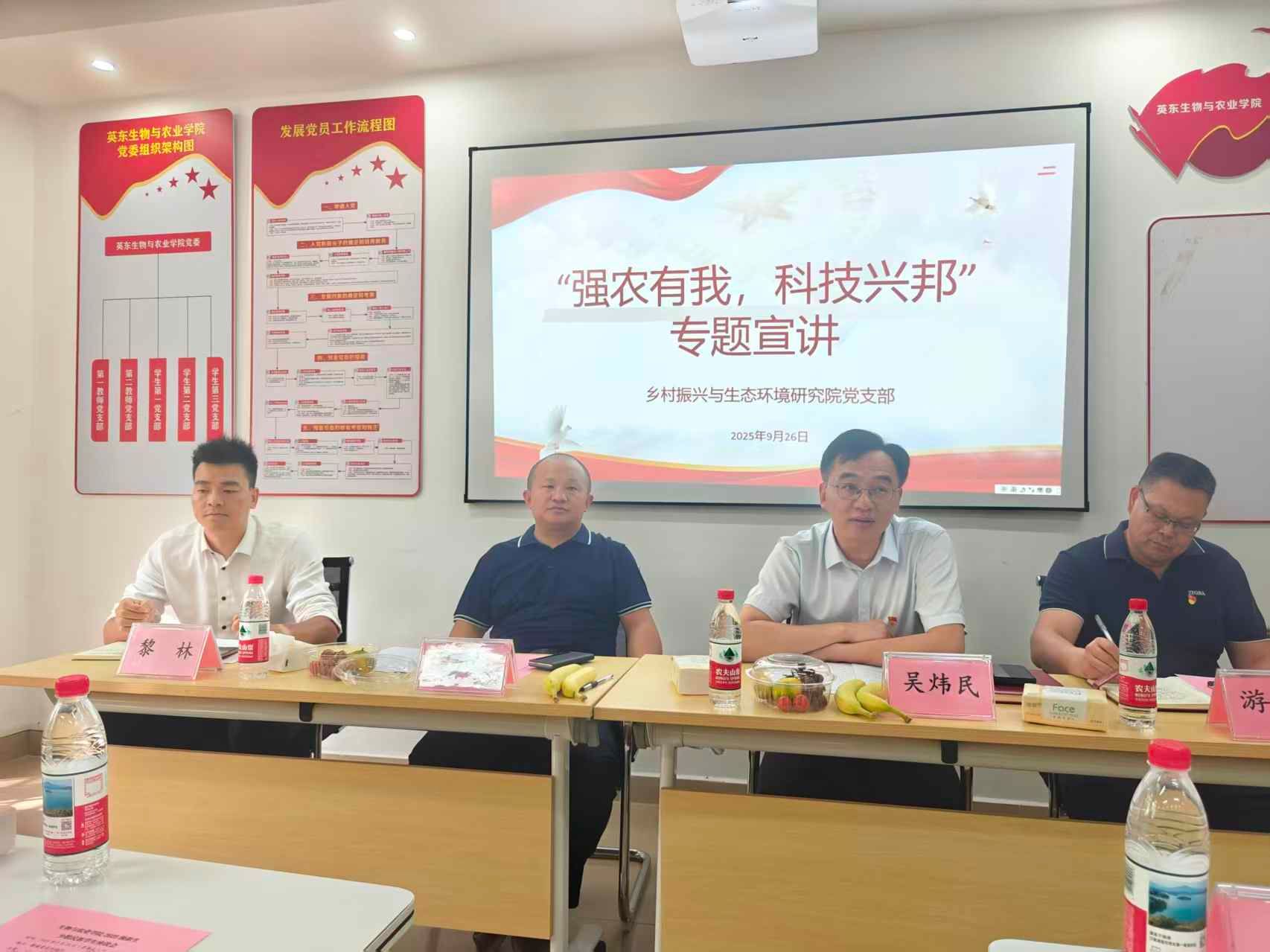 在会上,党支部书记吴炜民以“强农有我,科技兴邦”为题,为结对共建班级作专题宣讲。他从习近平总书记关于“三农”工作和农业科技的重要论述谈起,结合学校“双百行动”工作中的藤茶、蝴蝶兰、木耳、灵芝等地方产业发展的实际案例,深入浅出地向同学们展示了生物与农业学科的发展前景和时代使命。这不仅是一次引领学生进行理论学习的生动课堂,更是落实党员干部“带头讲党课、领学党的创新理论”的具体实践。