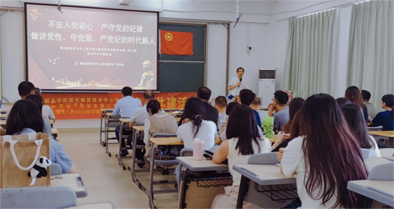 活动在“看片段说事件”“听歌识曲”“看图猜人物”等热身小游戏中开展,现教中心全体党员观摩了教育科学学院学生的主题班会,并参与了团日活动。现教中心党支部刘东远书记作了《不忘入党初心 严守党的纪律,做讲党性、守党规、严党纪的时代新人》专题党课。刘东远从“为什么要‘讲党性守党规严党纪’”“《中国共产党纪律处分条例》主要内容及特点”“‘讲党性守党规严党纪’该怎么做”三方面展开,强调师生要自觉做党的创新理论的笃信笃行者,强化党性修养,严守党规党纪,以更加务实的作风,积极投身到今后的各项学习和工作中,脚踏实地,知行合一。
