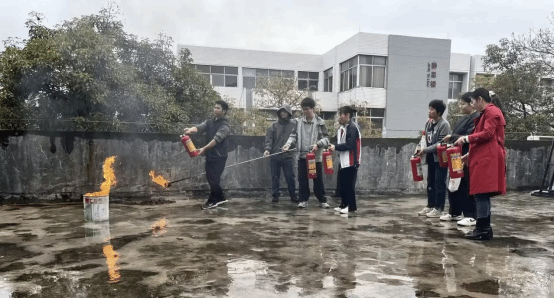 讲座结束后,中心教职工前往思齐楼空旷处进行了消防器材实操演练。侯晃灿老师向大家详细地示范了使用灭火器时的关键步骤和注意事项。随后,参加人员手持灭火器,依次上前进行灭火实操演练,展示了学习和演练的成效。