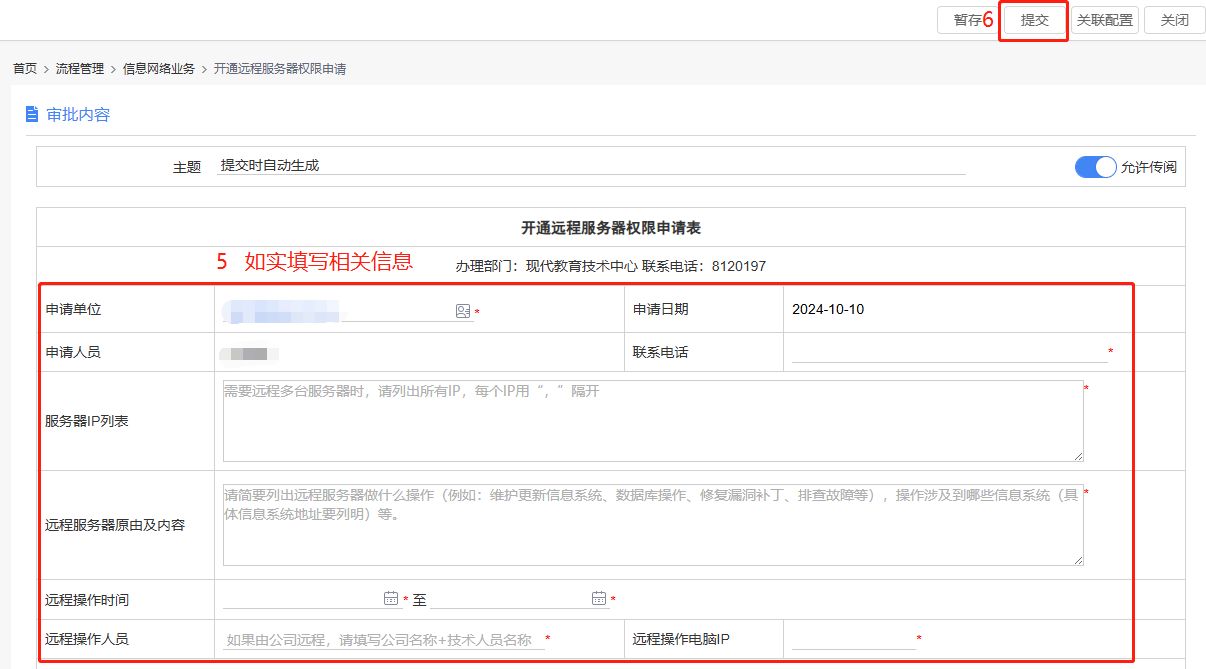 1、办理开通远程服务器,须由我校单位人员发起申请,通过OA填写申请表。