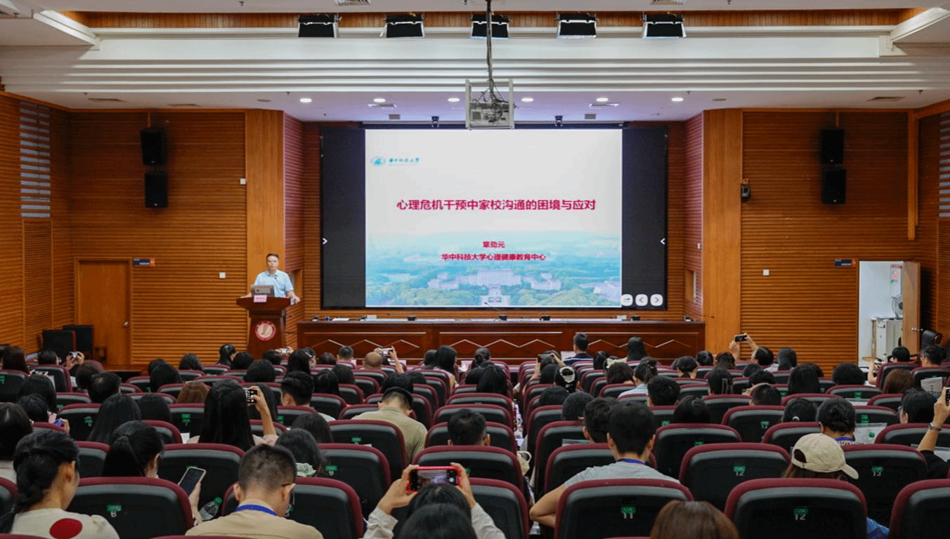 开班仪式结束后,华中科技大学心理健康教育中心主任章劲元教授围绕“心理危机干预中家校沟通的困境与应对”这一主题,带来了一场精彩的授课。章教授借助典型案例,引导老师们互动思考,从沟通困境、实践思考以及法理天理三个维度,深入讲授了如何有效开展家校沟通。