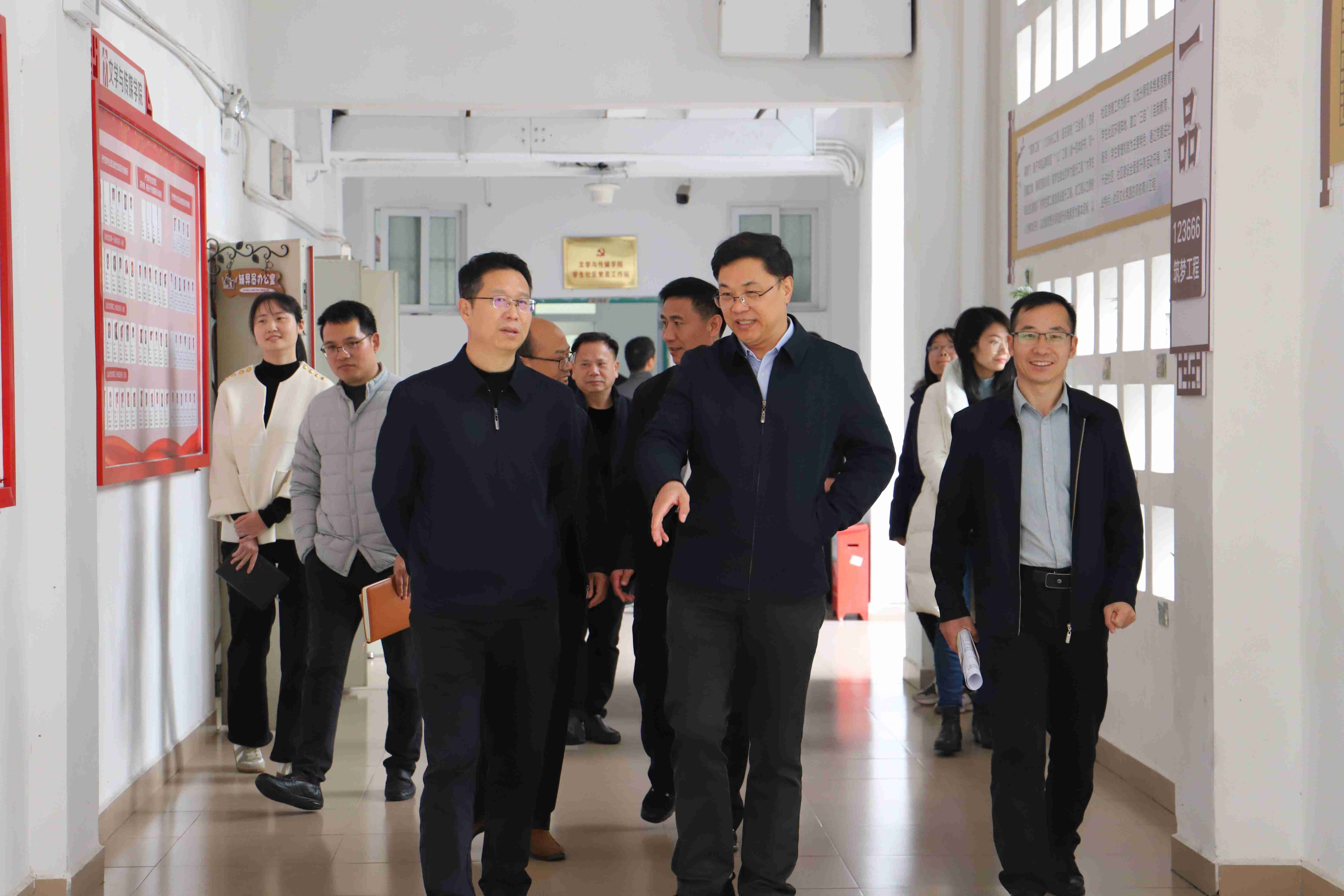 曾楚清一行先后参观了我校善美区紫薇苑、碧桂苑、丹竹苑学生社区和大学生劳动教育体验室,深入了解我校学生社区党建、劳动教育开展情况。在边走边看的过程中,何金明向曾楚清介绍了我校学生社区管理和服务育人的工作经验和做法。曾楚清表示我校学生社区的很多工作做法值得学习借鉴,并介绍了韶关市第一中学的基本情况和办学特色,希望双方能发挥各自优势,互学互鉴,实现互利共赢。