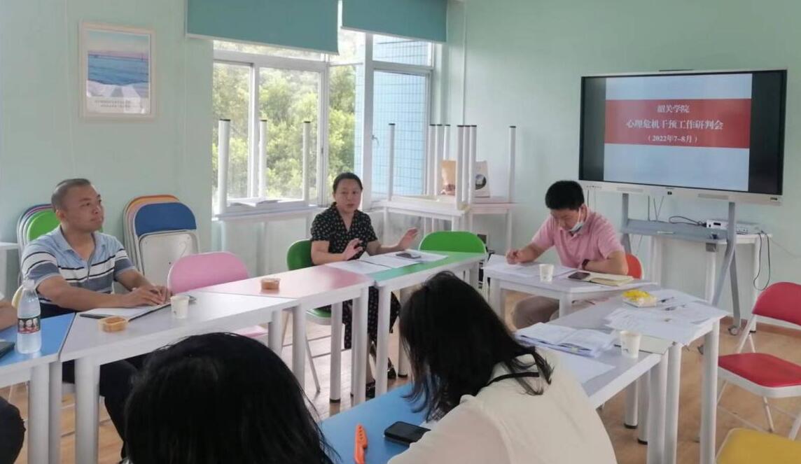 为切实加强2022年秋季学期学生心理危机预防与干预工作,最大限度防范学生心理危机事件发生,全力维护学生生命安全和身心健康,我校心理中心根据《广东省教育厅关于切实加强2022年秋季学期高校学生心理危机预防与干预工作的通知》(粤教思函〔2022〕17号)的文件精神,于9月6日上午在心理中心团辅室召开了2022年7-9月大学生心理危机状况研判会,对暑期学生心理健康状态进行分析和研判并对新学期心理健康教育工作做了部署。心理中心张鸿飞主任、中心全体教师、各二级学院心理指导老师出席了会议。