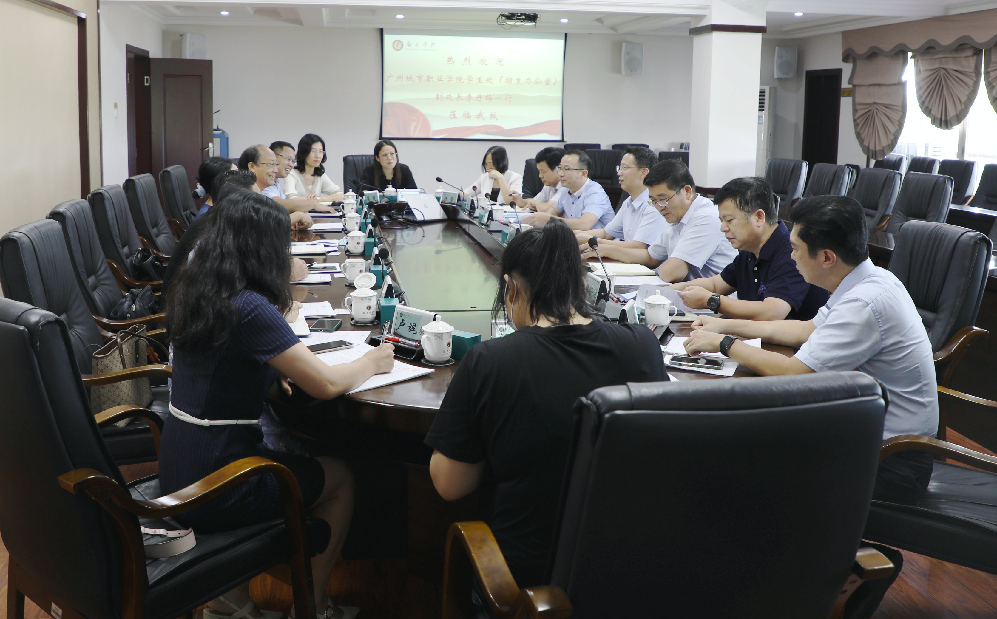 广州城市职业学院学生处、教务处、公共管理(社区管理)学院等相关负责人,我校党委办公室、教务处、发展规划处、学生处、政法学院、商学院相关负责人参加了交流。