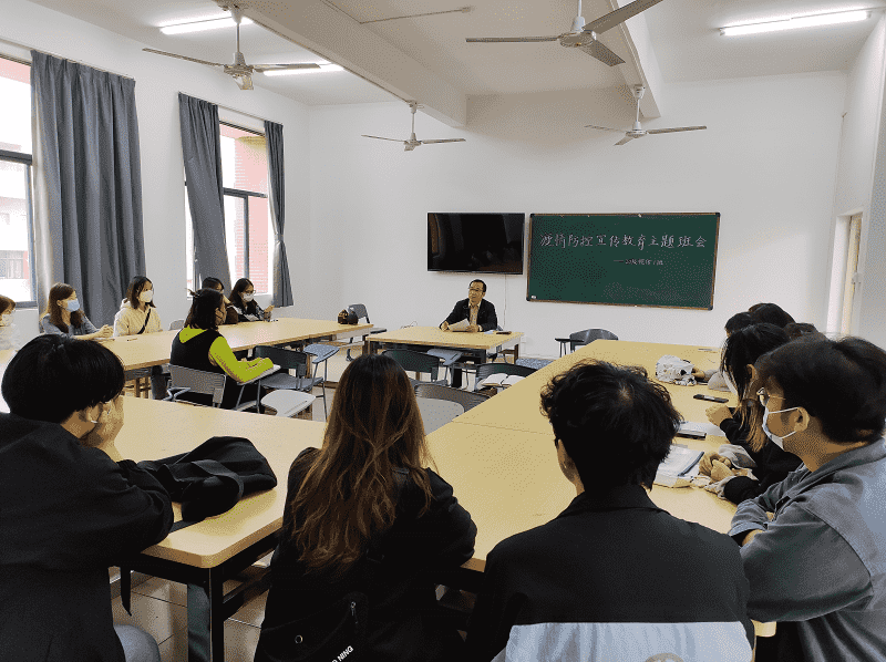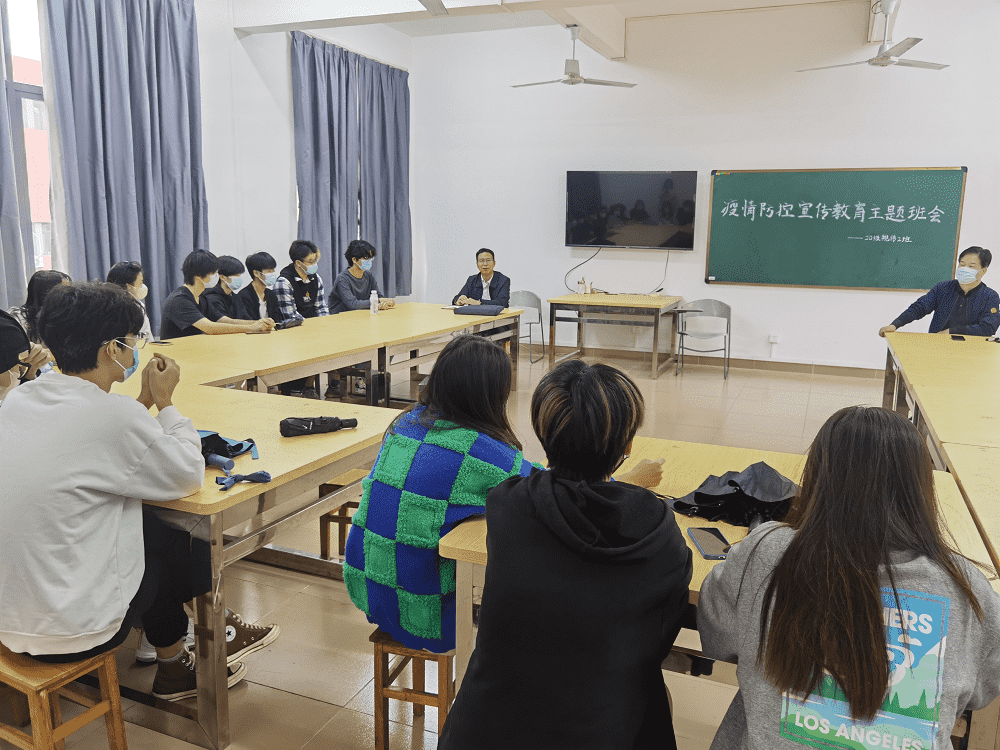 副校长何金明受邀参加了2020级视觉传达设计2班团支部疫情防控宣传教育主题班会。班会上,美术与设计学院党委负责人、班主任老师等向同学们传达学习了上级疫情防控工作有关精神,强调了学校疫情防控相关规定和要求。何金明结合近期严峻复杂的疫情防控形势,通过身边事例教育引导同学们要树牢“个人是自己健康第一责任人”的意识,做到讲诚信、遵法规、守纪律,服从学校管理,做好个人防护,共同画好战“疫”最大“同心圆”,切实维护校园安全稳定。