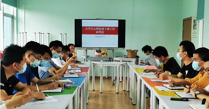 为科学把握学生心理健康状况,预防心理危机事件,我校心理健康教育与咨询中心(下称“心理中心”)根据《广东省教育厅关于切实加强学生心理健康教育积极预防和减少疫情对学生负面心理影响的通知》、《广东省教育厅关于切实2022年春季学期高校学生心理危机事件防范工作的通知》(粤教思函〔2022〕2号)的文件精神,于6月1日上午在心理中心团辅室召开了2022年第二次大学生心理危机干预工作研判会,对近期学校心理健康教育工作进行分析和研判。心理中心主任张鸿飞、中心全体专职教师、各二级学院心理指导老师出席了会议。