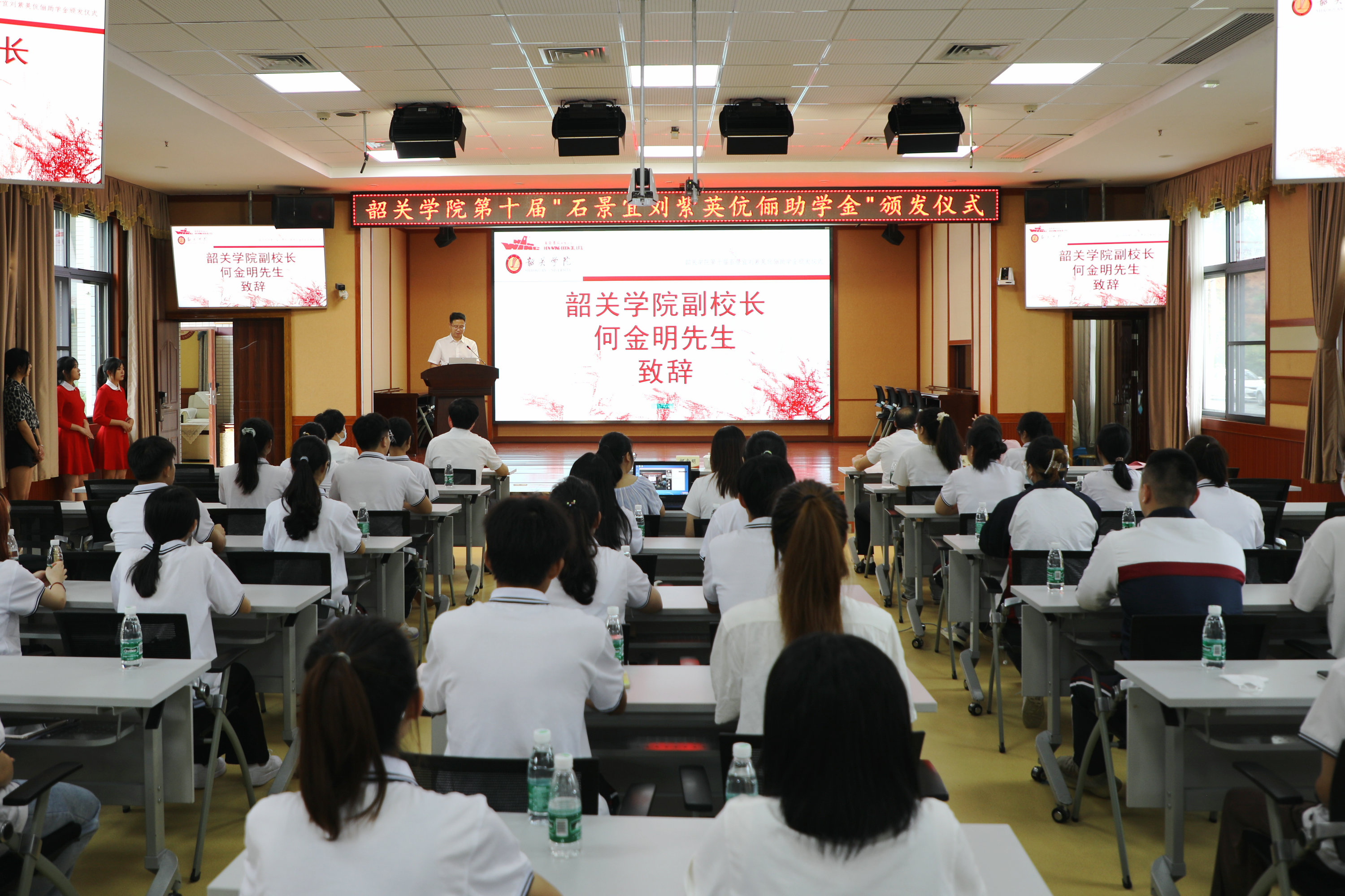 何金明在致辞中表示,香港汉荣书局有限公司一向关心支持祖国文化、教育事业的发展,关心支持我校贫困学子的学习生活。自2012年开始在我校设立“石景宜刘紫英伉俪助学金”以来,今年是香港汉荣书局有限公司第十年在我校开展助学活动,“十年树木,百年树人”,这十年,在帮助家庭经济困难学子改变自身命运的同时,更对社会产生了深远影响。今年,汉荣书局有限公司颁发的第十届“石景宜刘紫英伉俪助学金”资助贫困学生36人,希望受助学子牢记这份爱心,常怀感恩之心,坚持奋斗之行,以优异的成绩和实际行动回报国家和社会。