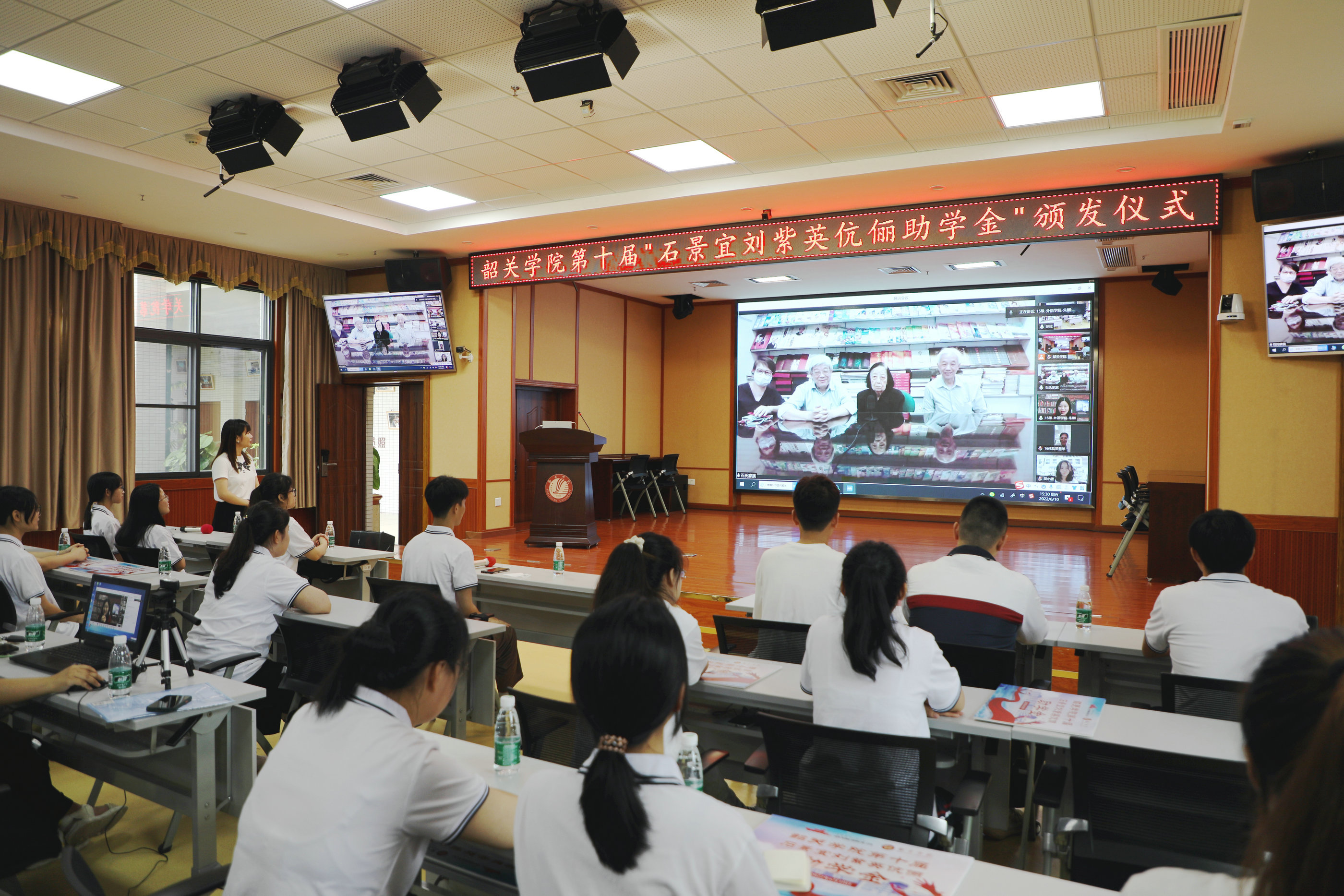 6月10日下午,我校第十届“石景宜刘紫英伉俪助学金”颁发仪式在教师发展中心智慧教室举行。石景宜博士夫人刘紫英女士、香港汉荣书局有限公司董事长石汉基先生、香港汉荣书局有限公司总经理石国基先生及夫人伍秀梅女士、香港汉荣书局有限公司副总经理石颖芝女士通过线上出席仪式,我校副校长何金明出席活动。