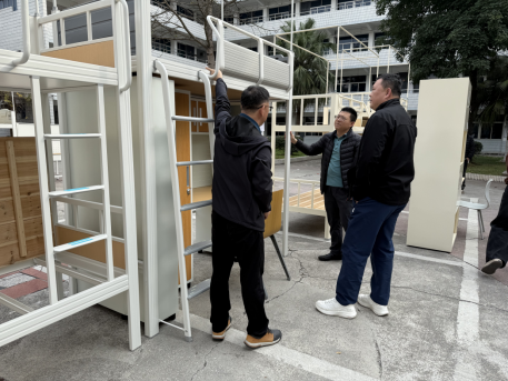 为进一步做好学生宿舍家具参数设计,给居住学生创造更加舒适安全的生活环境,在前期市场需求调研的基础上,1月16日,学生工作部联合相关职能部门以“公开邀约 自愿参与”的方式,邀请了12家省内学生宿舍家具供货商来校进行现场实物展示。