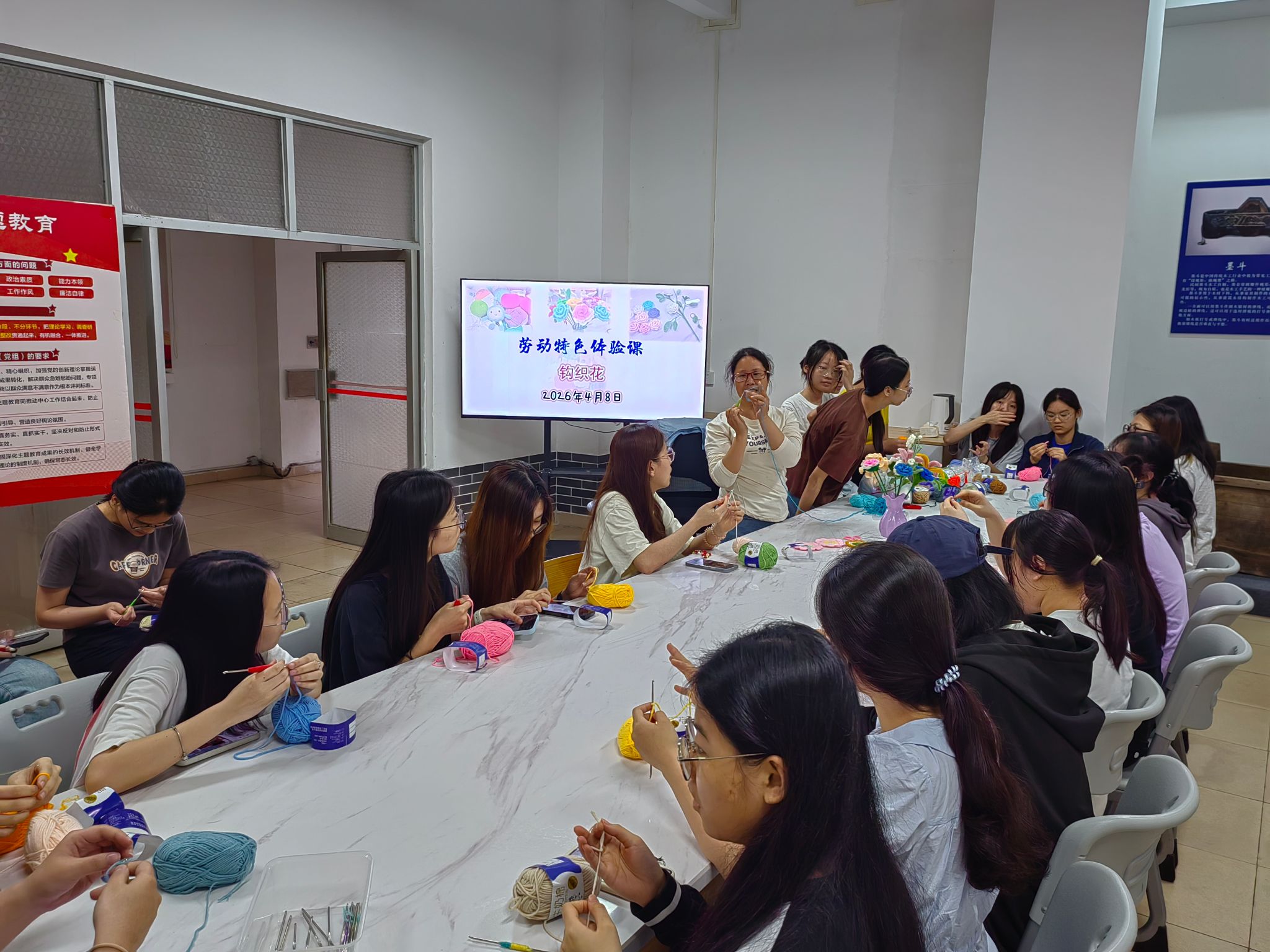 一针一线织美好,一钩一绕传温情。为丰富劳动体验、感受传统手工魅力,学生工作部开展“一站式”学生社区劳动特色体验课——钩织花,让同学们在动手实践中,收获治愈与快乐。
