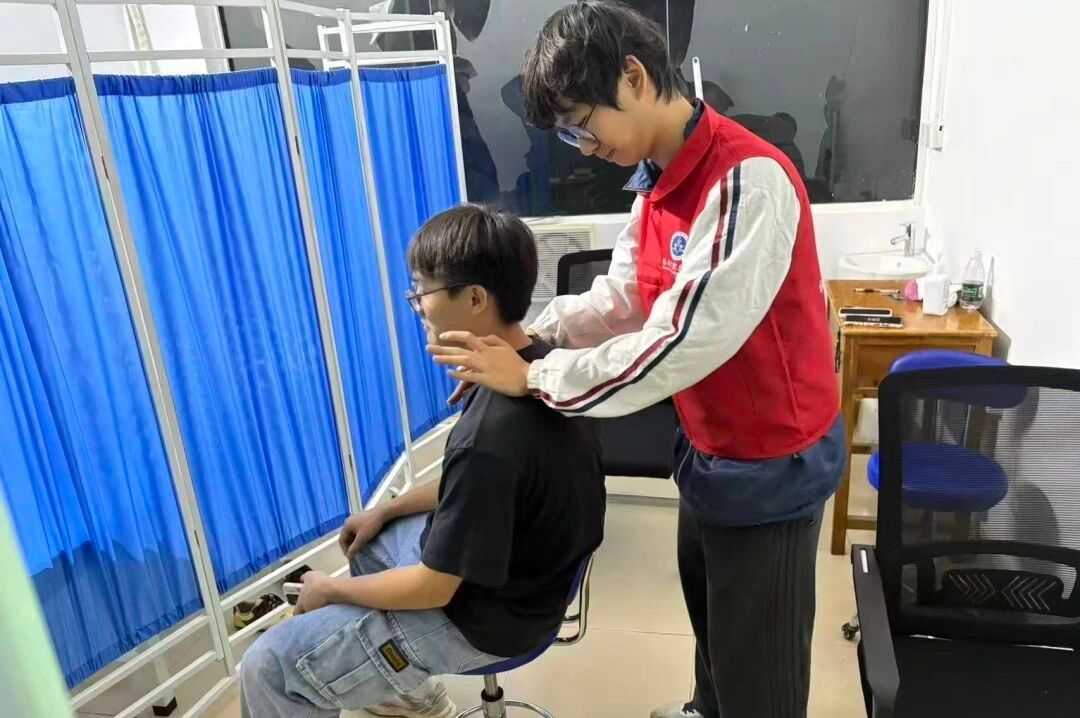 不同于AI科创,中医养生坊暖心护航学子健康。针对学业压力大、身心疲惫等问题,坊内提供推拿、耳穴压豆、拔罐、艾灸四大特色中医服务。让学子感受传统医学魅力,掌握养生技巧,舒缓疲劳,树立健康生活理念。