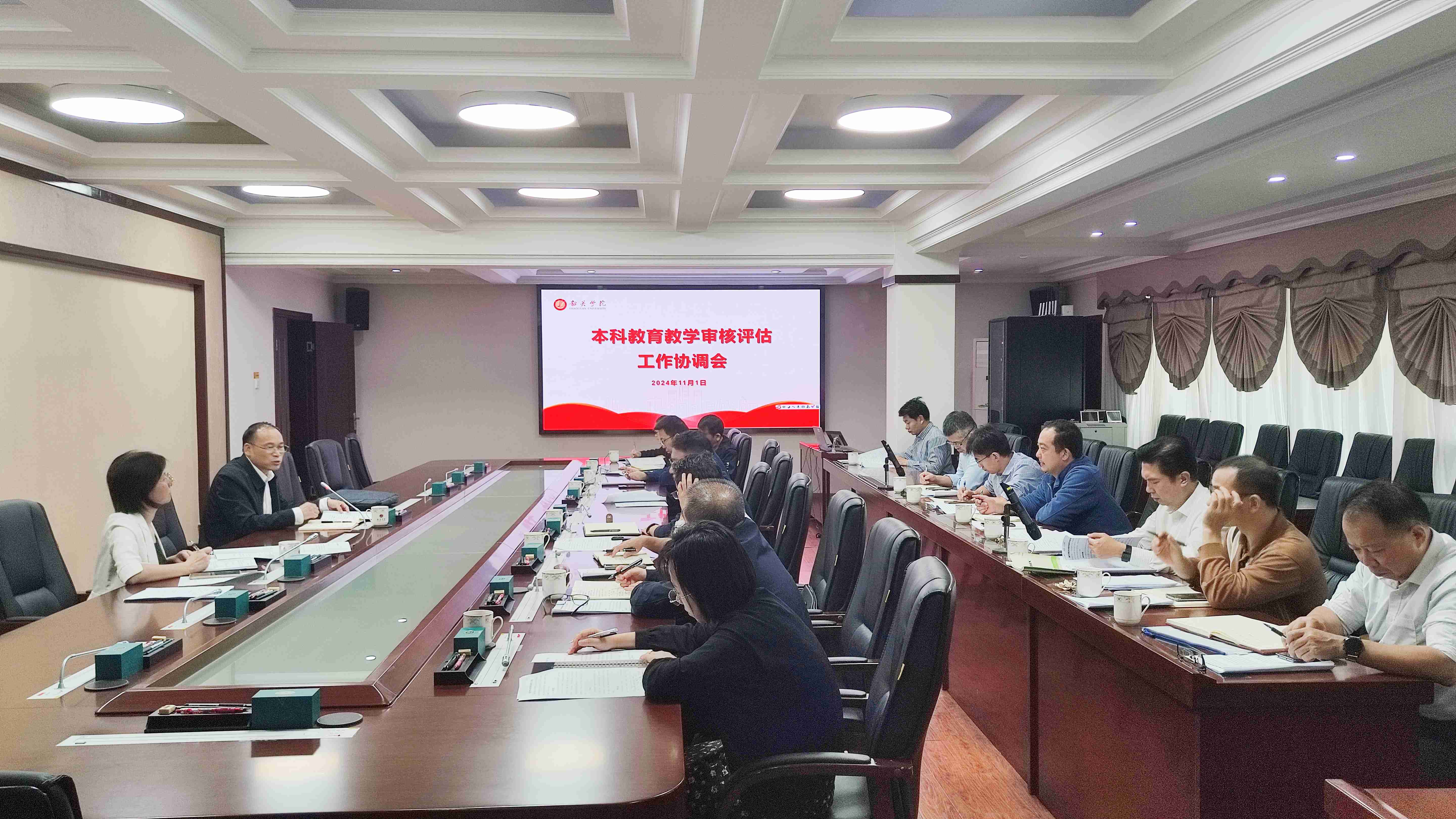 会上,教学质量监测与评估中心负责人介绍审核评估准备情况,与会人员讨论了本科教育教学审核评估工作方案及任务分工。