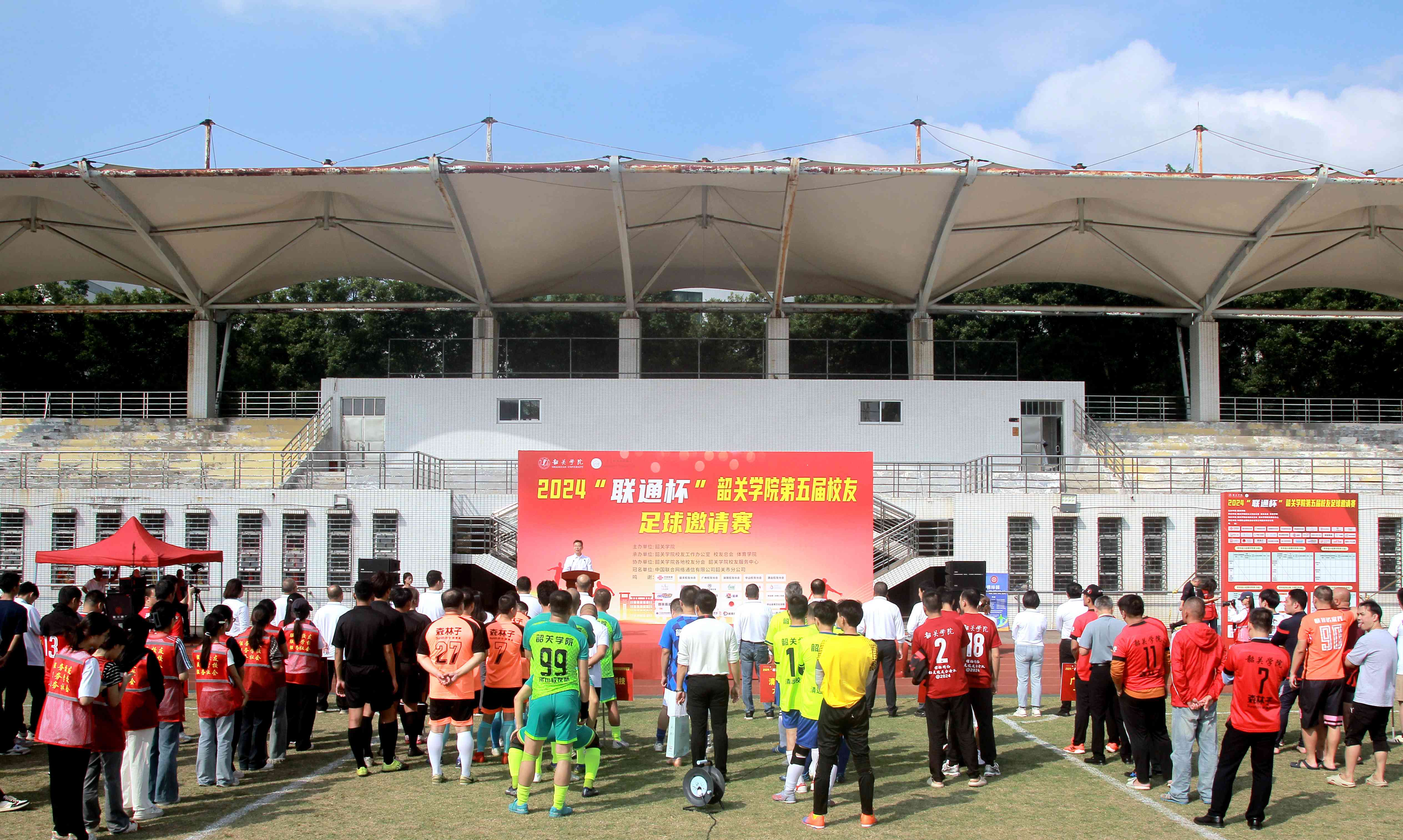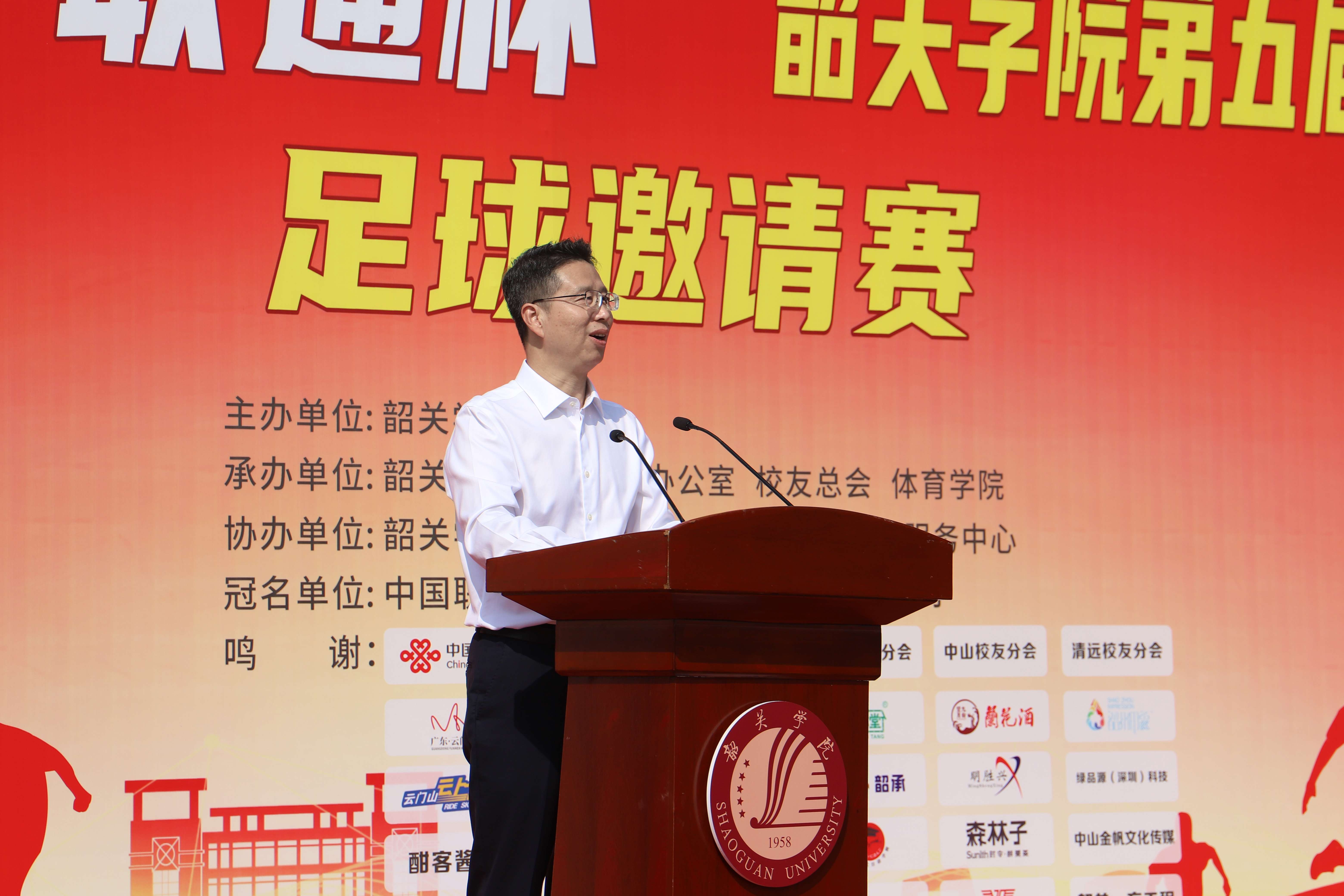 开幕式上,何金明代表学校向返校参赛的各地校友表示热烈欢迎。他表示,校友足球赛不仅是一场体育活动的交流,更是一座桥梁,一个纽带,是一次凝聚校友力量的宝贵机会。他希望校友们在各行各业中继续砥砺奋进,勇于拼搏,持续关注和支持学校的发展,以炽诚的热情和实际行动为学校的发展贡献更多韶院人的力量。