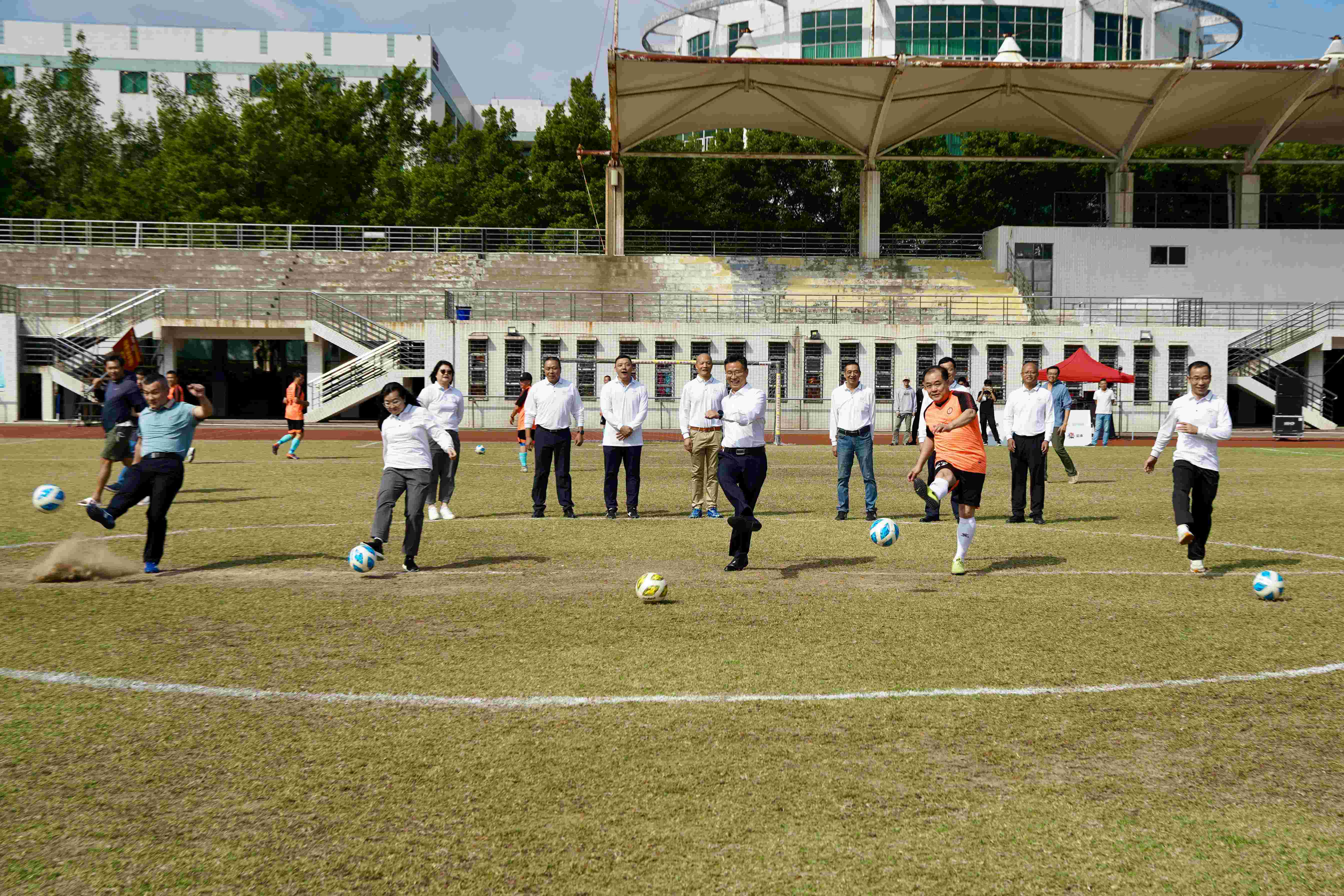 开幕式结束后,何金明与嘉宾共同为此次比赛开球。