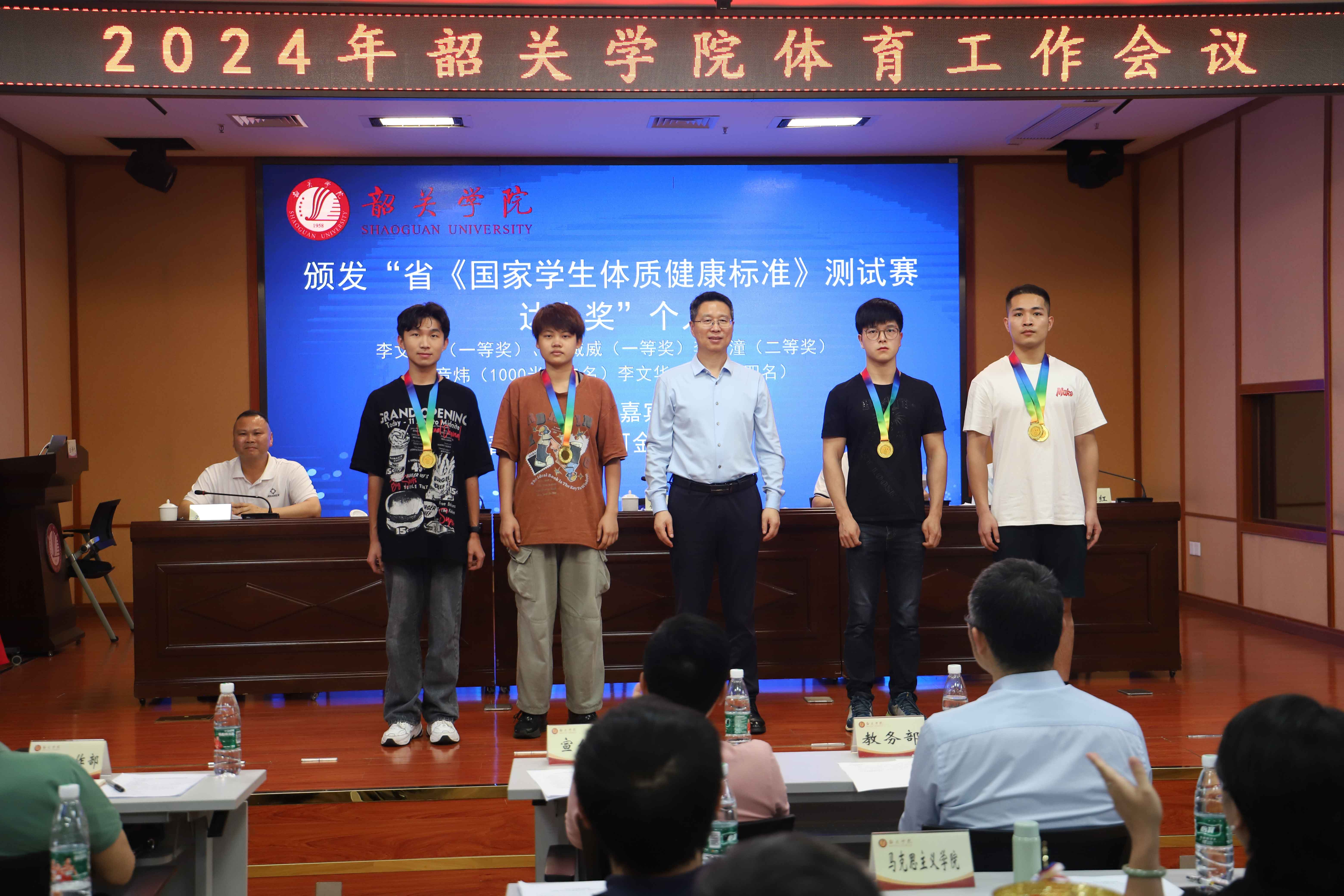 会议对2023年第四十三届运动会田径比赛团体总分前八名、2023年第四十三届运动会团体总分前八名及体育道德风尚奖,2023年体测工作先进单位、优秀个人,2023年体育工作突出贡献单位、2023年省《国家学生体质健康标准》抽测获奖运动员、省首届《国家学生体质健康标准》测试赛获奖运动员等进行了颁奖。