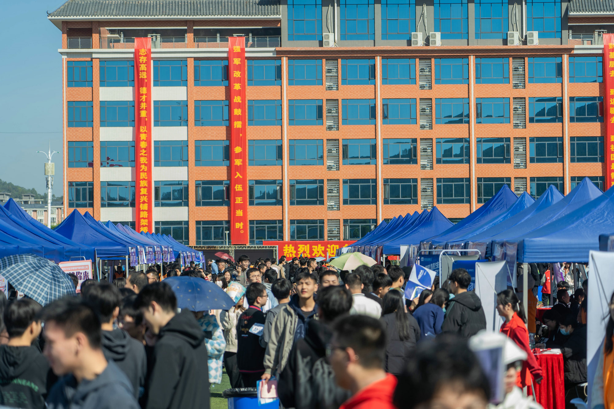 11月18日,由广东省教育厅主办、韶关学院承办的广东省2024届普通高校毕业生系列供需见面活动(粤北地区专场)在我校明德区田径场举行。本次活动依托广东省大学生就业创业智慧服务平台,采取线上线下一体化的方式进行,近300家省内外企业到现场开展招聘,另有近百家企业参加线上招聘,向毕业生提供职位1600余个、近1.7万个岗位,涵盖教育培训、机械电子、医药医疗、建筑地产、能源化工、贸易电商等十多个行业领域。