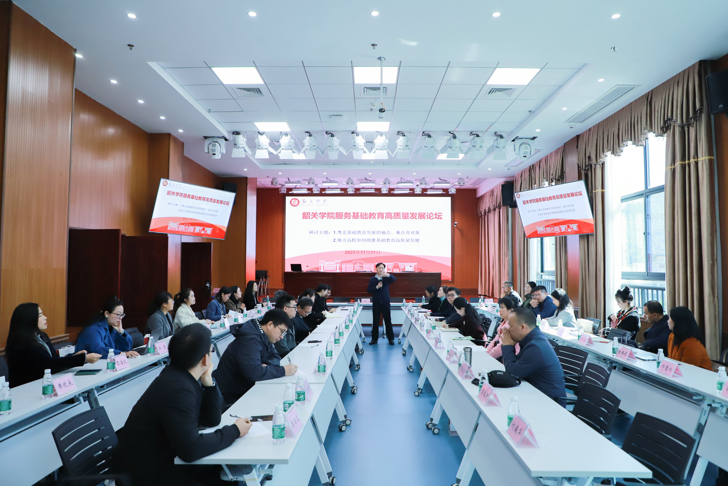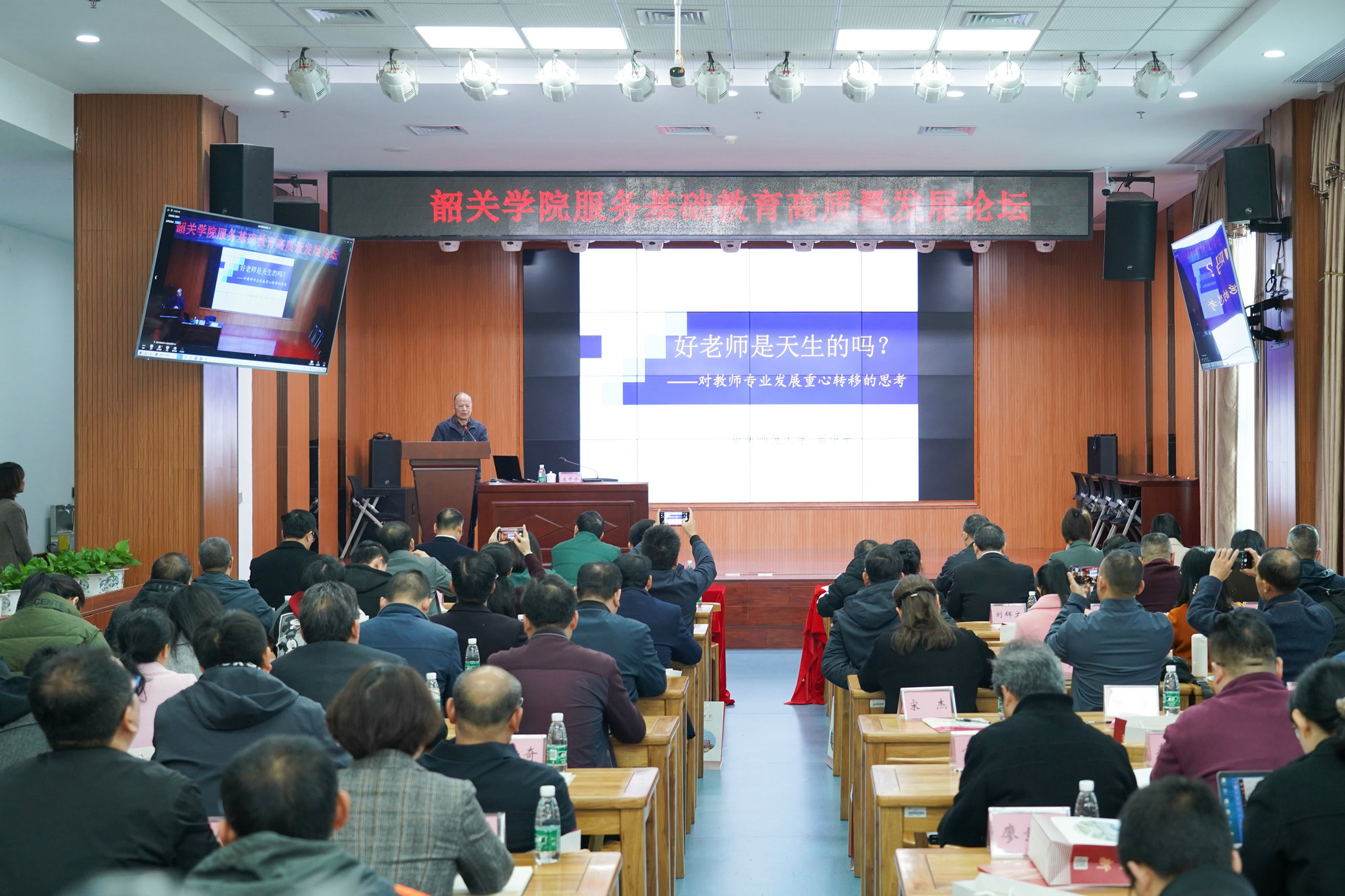 扈中平以《好老师是天生的吗?——对教师发展重心转移的思考》为题作讲座。他的讲座理论联系实际、内容丰富、逻辑严密,引人启迪,为促进教师专业发展和深化教师教育改革提供了新的思路。与会人员围绕“粤北基础教育发展的痛点、难点及对策”和“地方高校如何助推基础教育高质量发展”,结合讲座内容和自身教学、管理工作实践,针对基础教育发展存在问题,纷纷畅所欲言,为促进基础教育高质量发展建言献策。