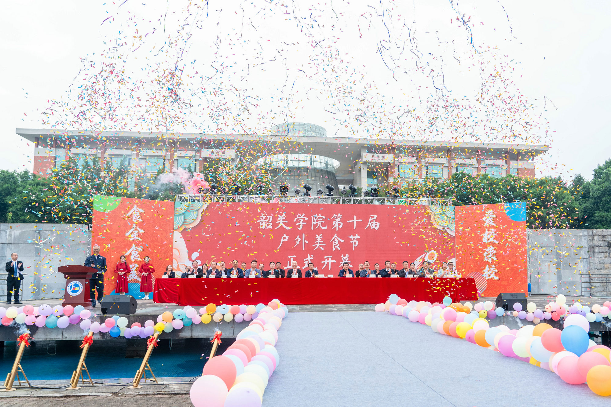 11月25日上午,由学校教务部主办、食品学院承办的韶关学院第十届美食文化节户外活动开幕式在学校明德区道平广场举行,通过举办系列学科竞赛和户外活动,丰富广大师生校园文化生活,进一步强化同学们的专业实践技能锻炼、美食文化体验,不断提升学生综合素质。学校副校长赵三银、广东科贸职业学院校长王海林,活动合作企业、深圳中食匠心食品有限公司总经理黄育东以及相关高校、政府管理部门、企业、行业协会等相关负责人,学校相关部门负责人,校友、食品学院师生参加了开幕式。