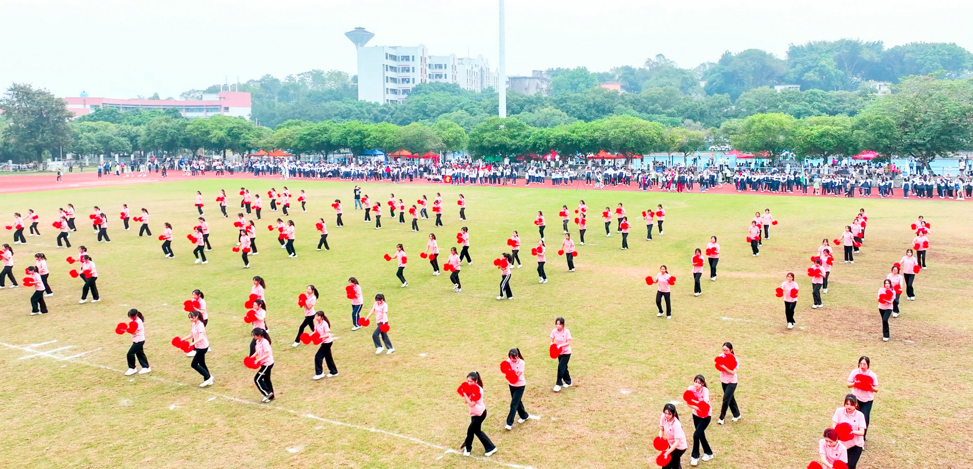伴随着激昂的《运动员进行曲》,国旗、校旗、彩旗方队,裁判员方队,教职工方队,各二级学院代表方队依次入场。