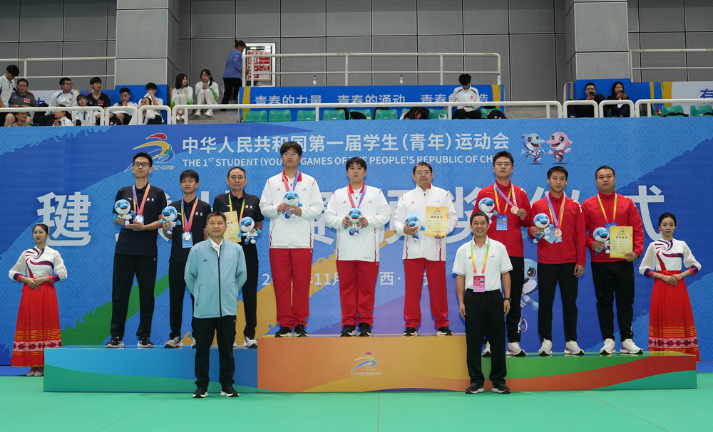 11月11日,第一届全国学生(青年)运动会毽球(校园组)双人赛在广西民族大学思源湖校区体育馆进行。我校医学院2020级临床医学(本科)1班魏荣骏同学代表广东队出战校园组(大学组)男子双人赛,经过激烈争夺,荣获男子双人赛亚军。11月13日,在校园组(大学组)男子三人赛争夺战中,魏荣骏同学代表广东队再次荣获男子三人赛铜牌。