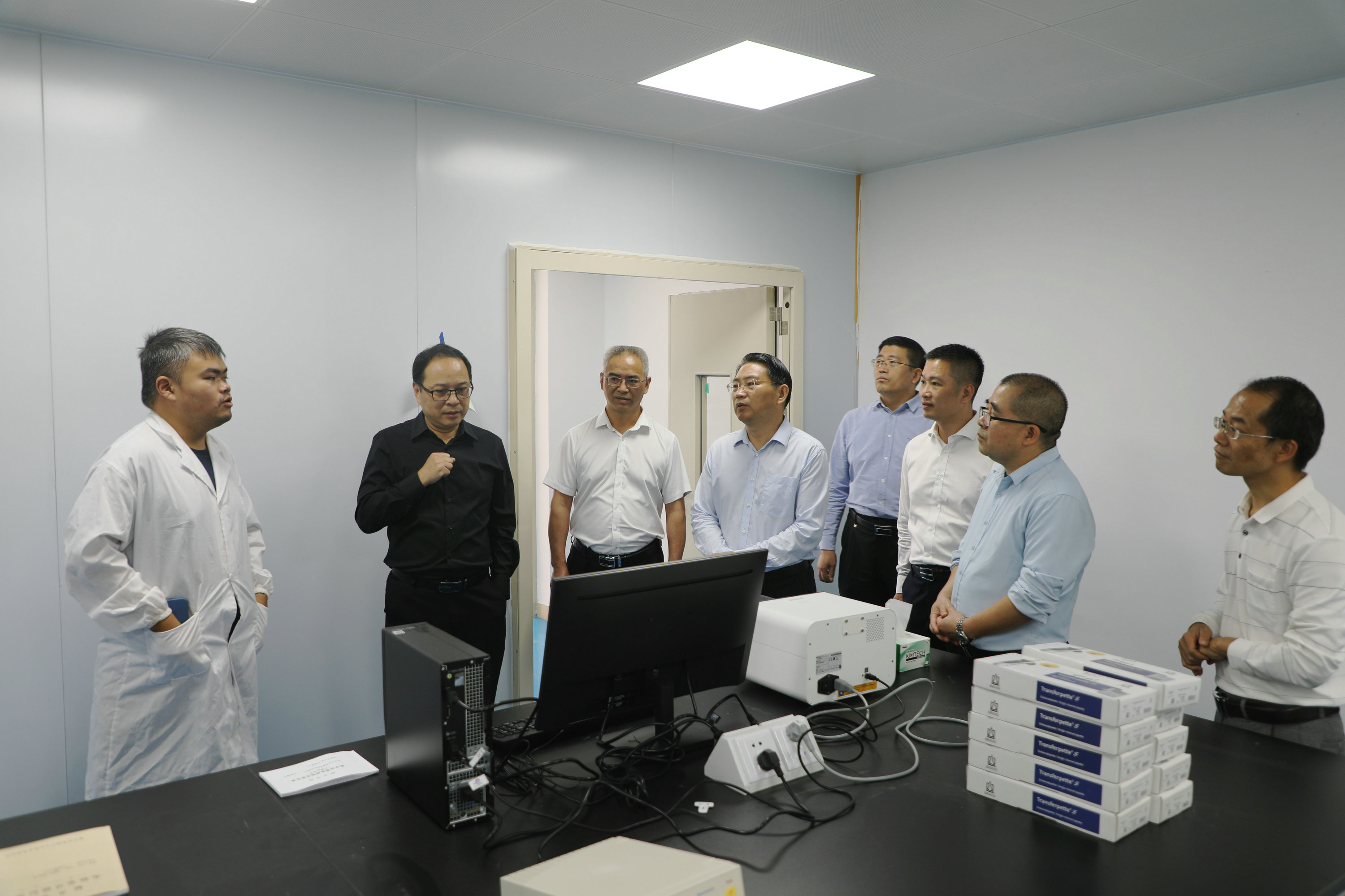仇荣亮一行参观了广东省粤北食药资源利用与保护重点实验室的精密仪器室、方向研究室和课题团队研究室,详细了解了省重点实验室各种精密仪器科研条件,并与专职研究人员进行了科研情况的交流。