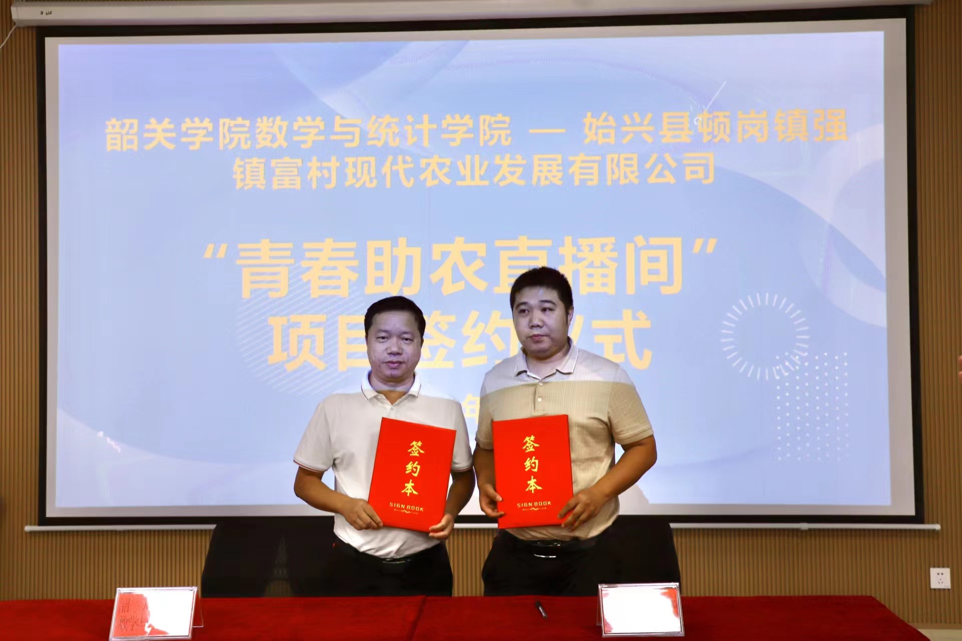 会议现场还举行了协议签订仪式,校团委与始兴县团委签订了县域社区社会实践协议,数学与统计学院与顿岗镇强镇富村公司签订“直播带货”合作协议。