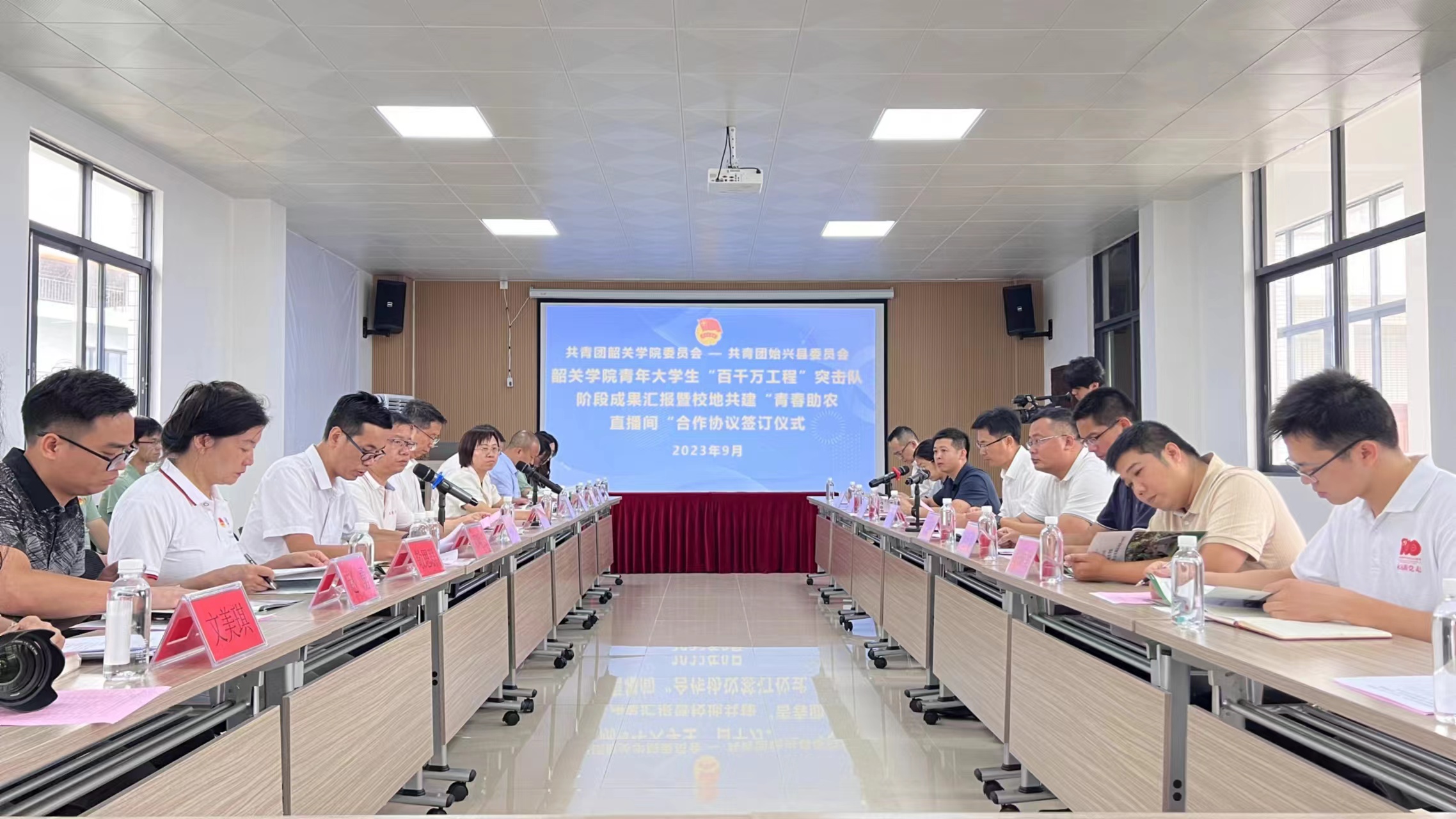 9月15日,我校与始兴县共青团共建“青春助农直播间”,合作协议签订仪式在始兴县供应粤港澳大湾区农副产品交易集散中心举行。始兴县委书记华关热情接待了参会成员。我校副校长何金明,始兴县委常委、县委办主任张福兴出席会议并讲话。