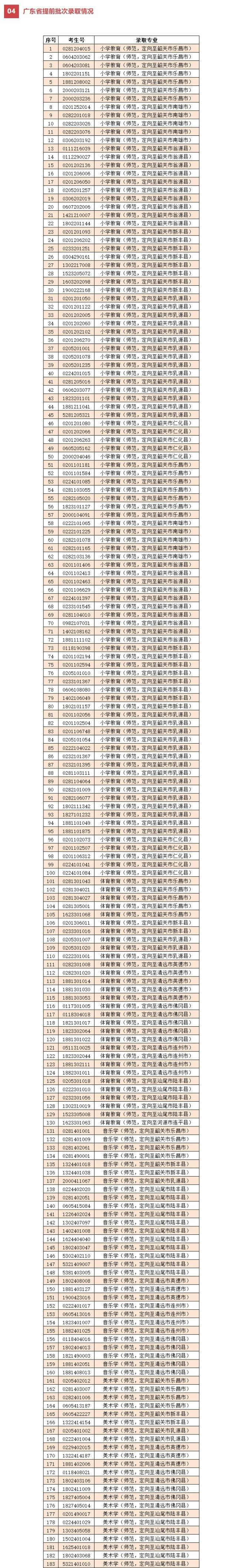 提前批次录取名单