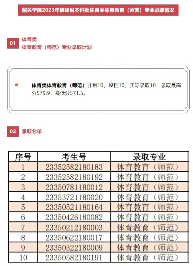 体育教育(师范)专业录取名单