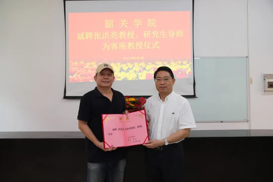 开幕式结束后,举办了张洪亮教授作品学术研讨会,廖益为张洪亮颁发了韶关学院客座教授聘书。