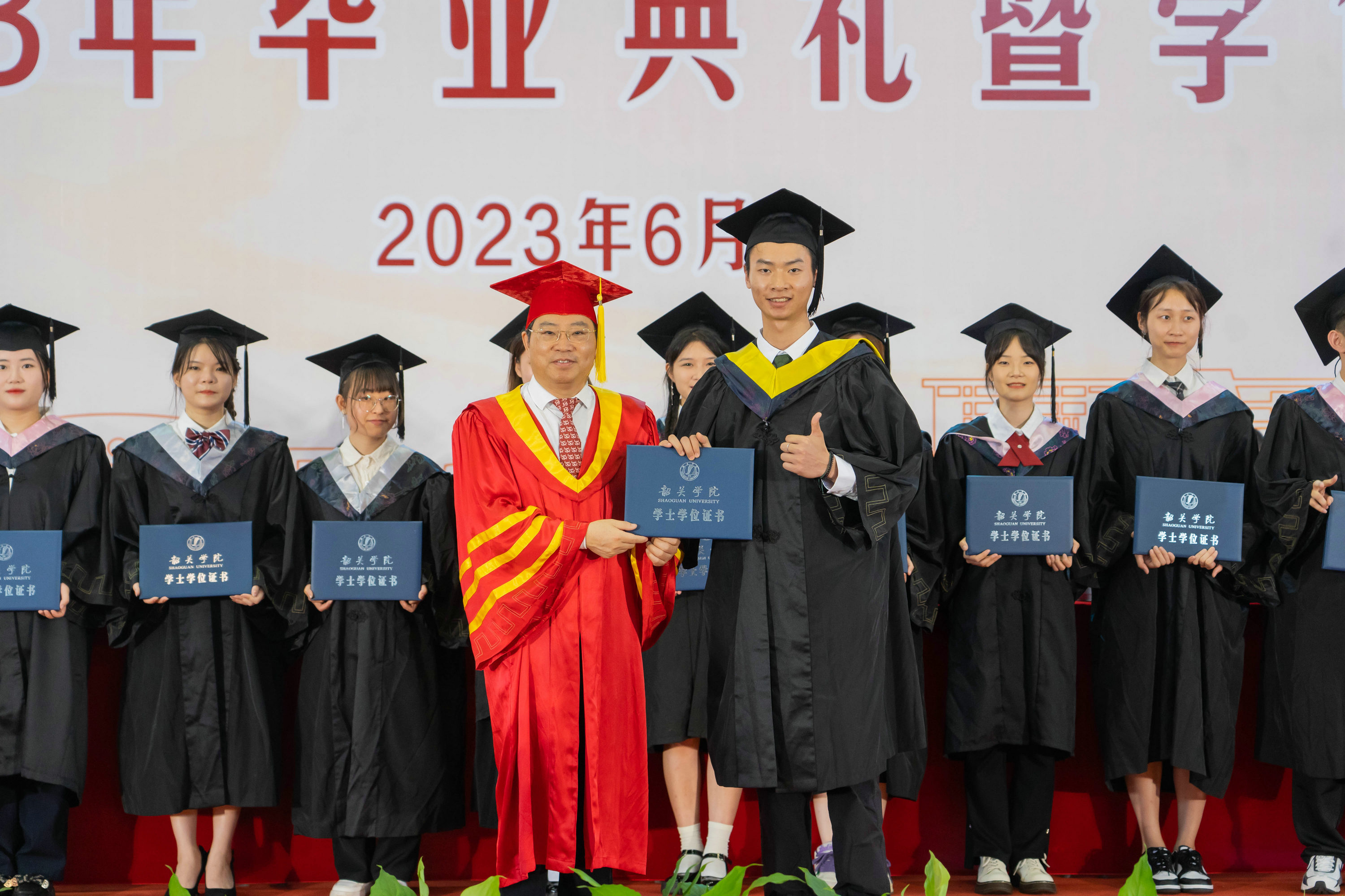廖益校长与2023届毕业生代表合影