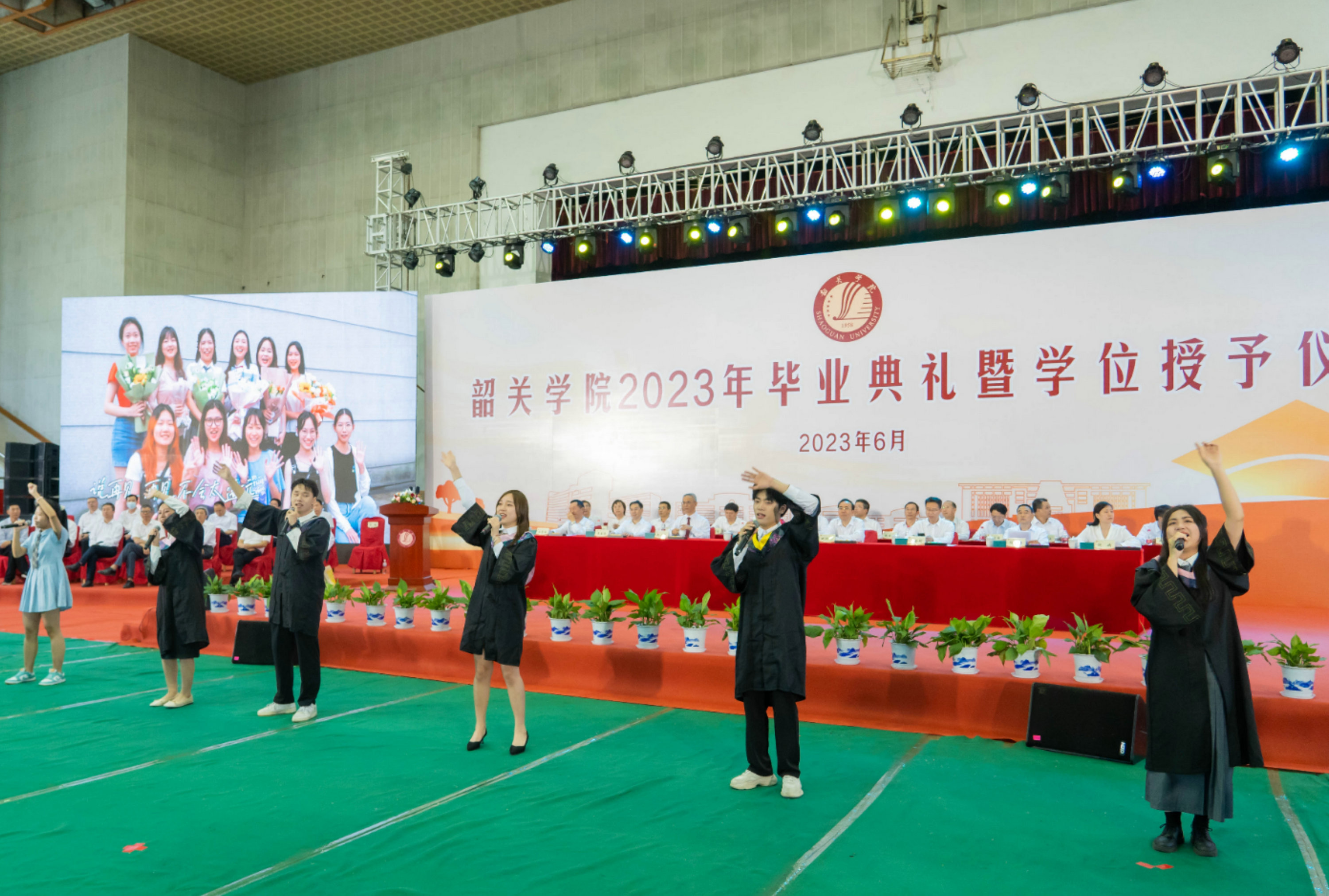 典礼开始前,《不说再见》《那些年》《青春纪念册》《飞得更高》《盛夏》……一首首耳熟能详的旋律,燃起了典礼现场氛围。典礼结束前,毕业生带来歌曲快闪《我记得》《我曾是少年》《祝福》,大家一起合唱、一起挥舞手臂,共同回忆大学四年的美好时光,感受着与韶院点点滴滴的故事,诉说着感恩、感动、不舍与难忘。