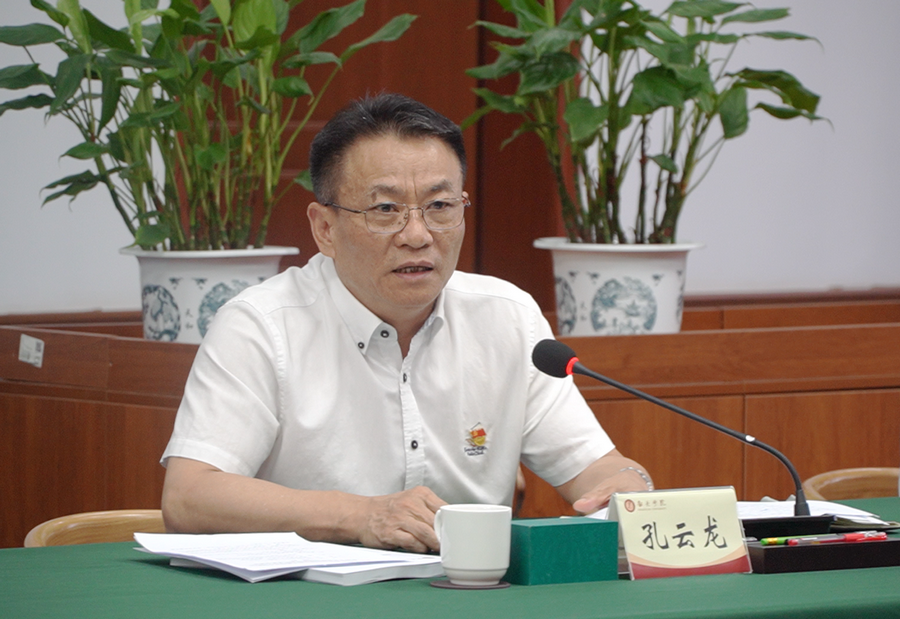 6月6日下午,我校召开主题教育调研成果交流会。学校领导班子成员围绕各自领题调研课题,交流汇报当前调研成果,梳理存在问题,找准工作短板,研究对策办法,创新思路举措,把调研成果转化为解放思想、改进工作、解决问题、推动高质量发展的具体行动,确保主题教育取得实实在在成效。省委主题教育第十九巡回指导组组长刘海陵,副组长黄友文、陈虎以及指导组全体成员到会指导。学校党委书记孔云龙,校长廖益,党委副书记、纪委书记、监察专员邓惠毅,党委副书记姚红光,副校长赵三银、何金明、吴善添作调研成果汇报交流。