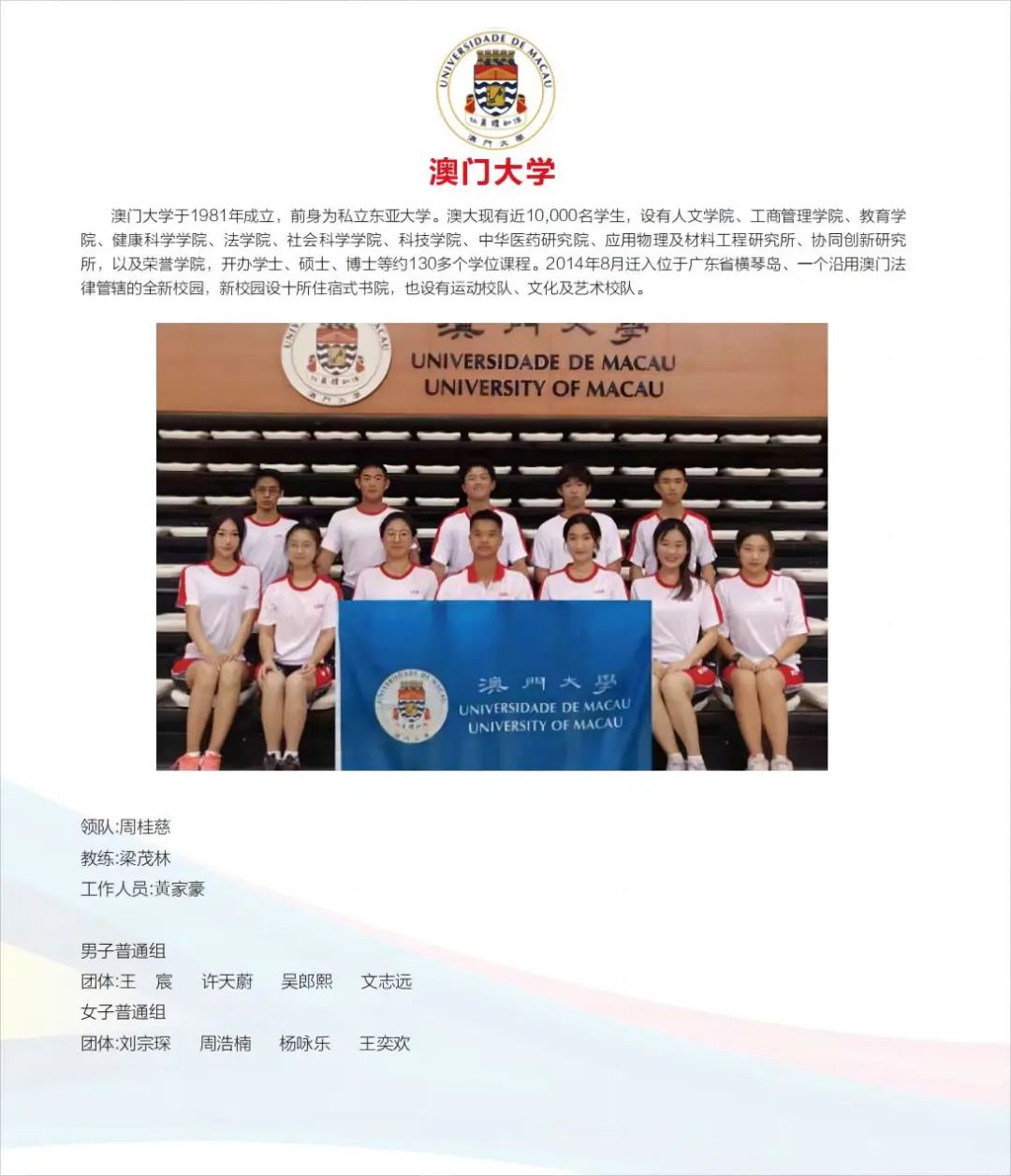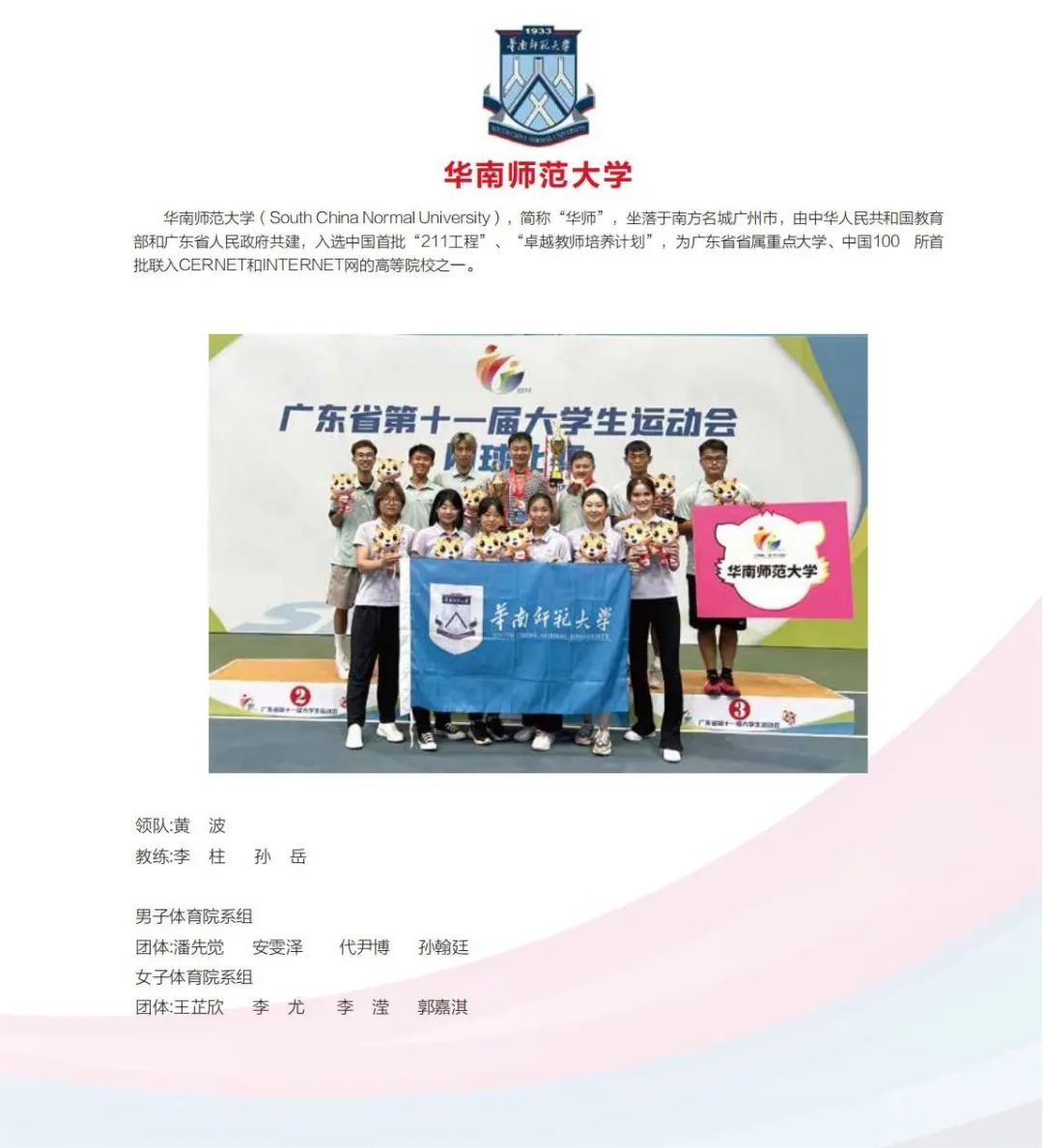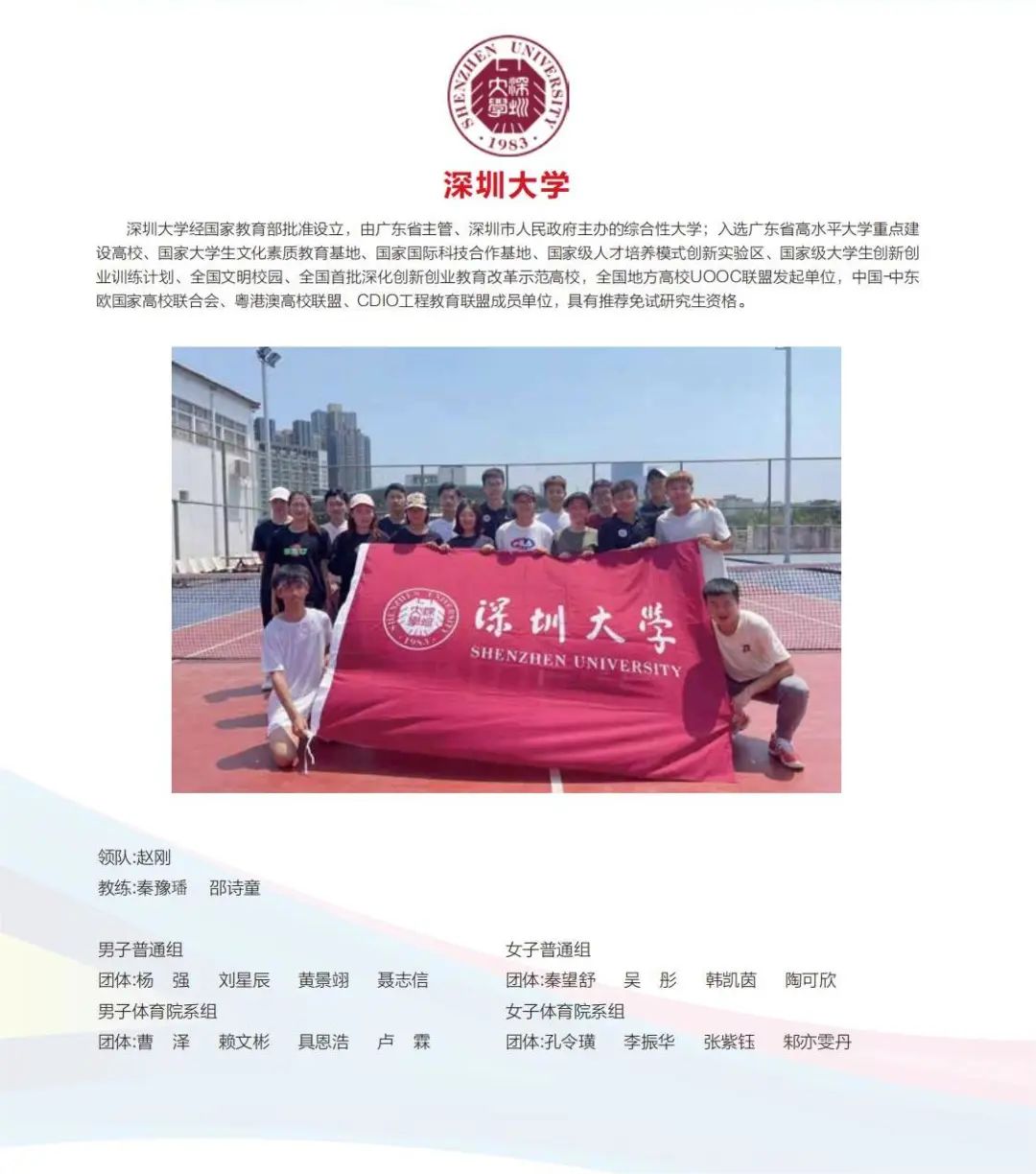男子体育院系团体11支队伍