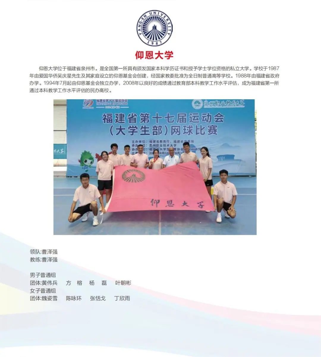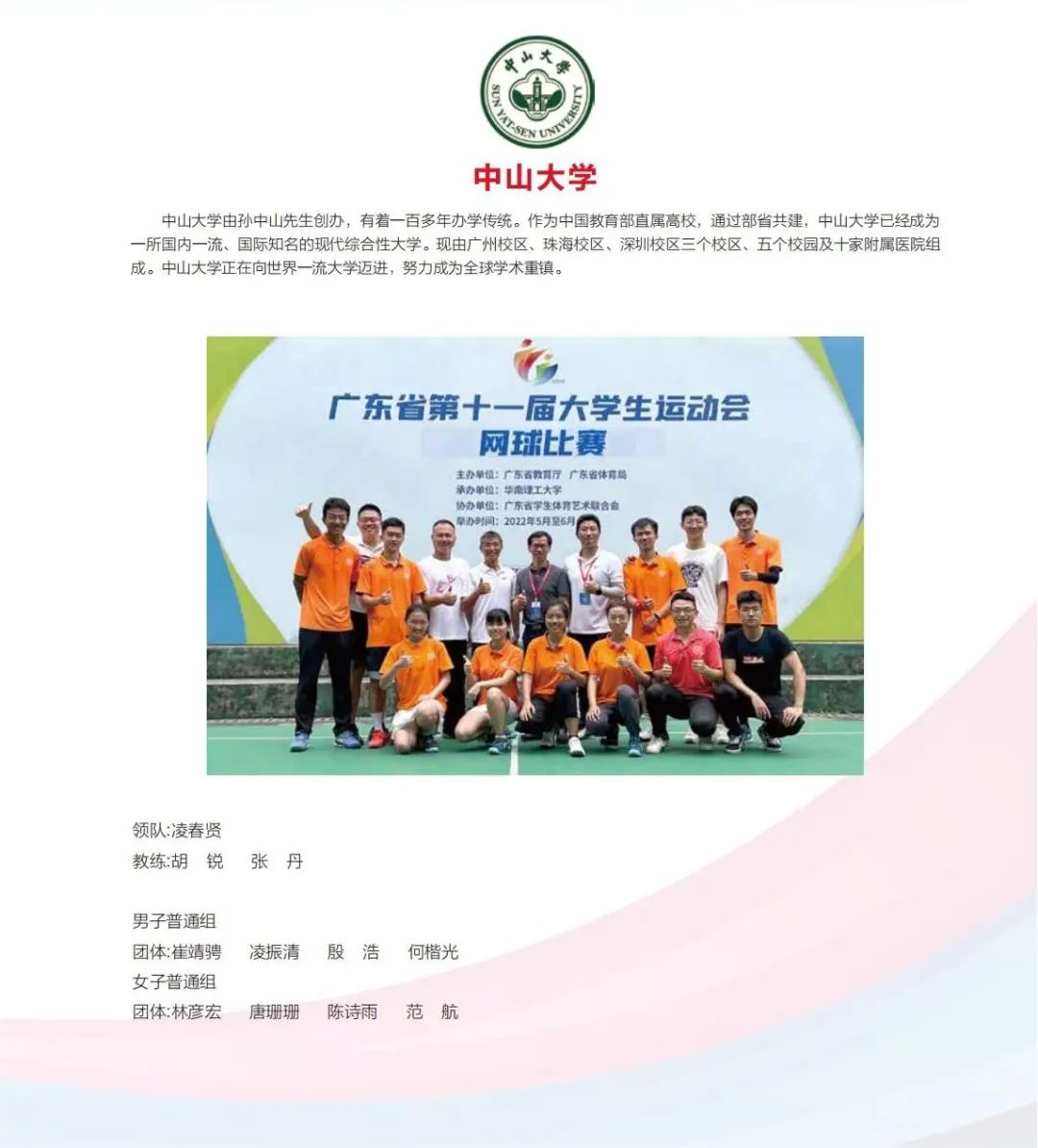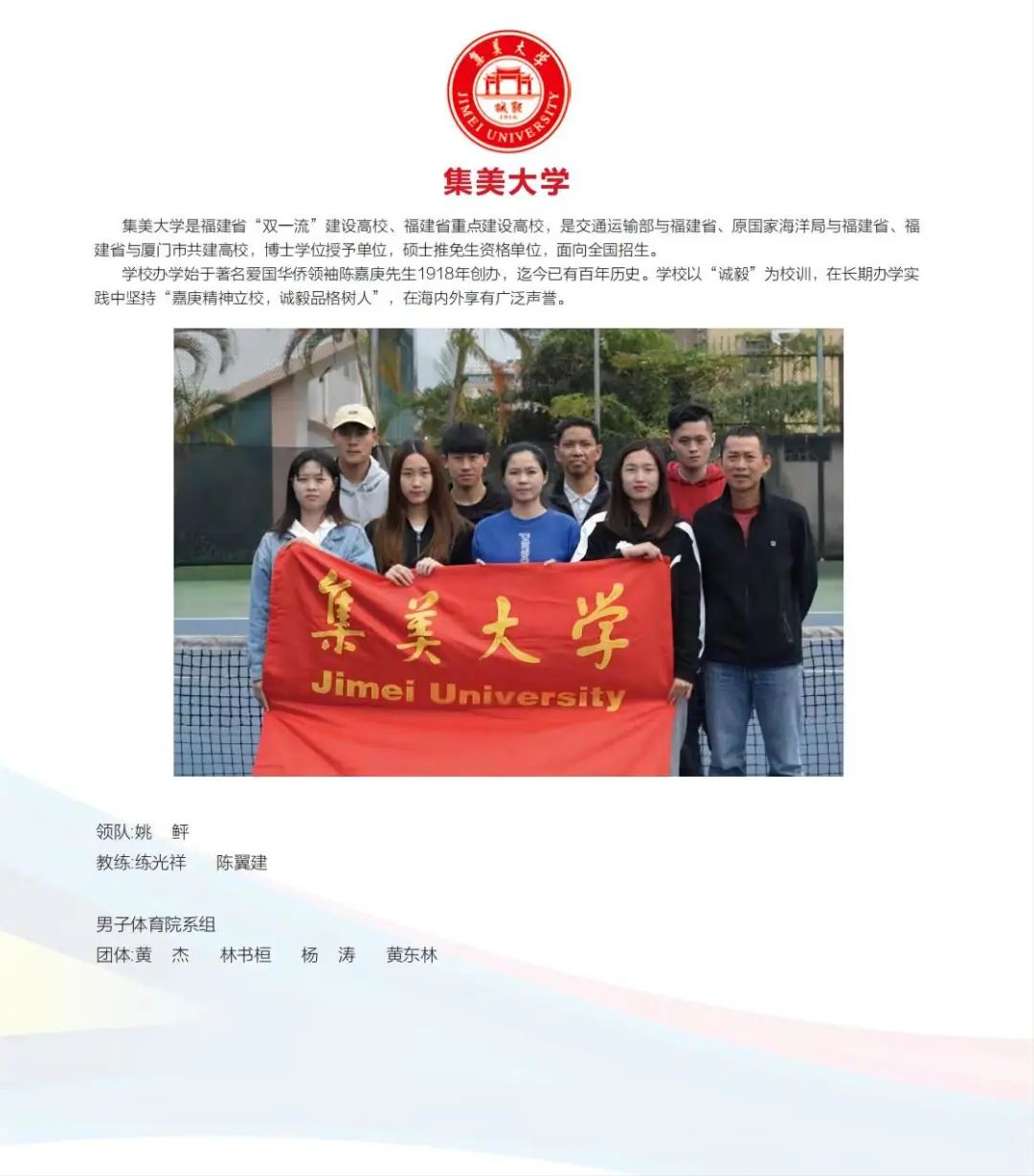 男子体育院系团体11支队伍