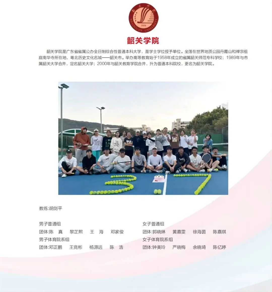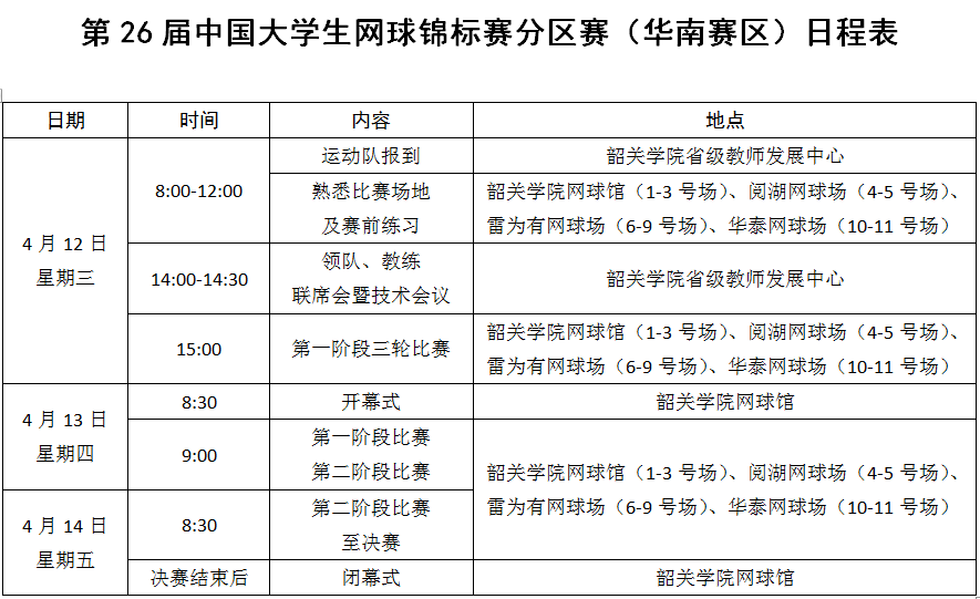 比赛在韶关学院网球馆、阅湖网球场