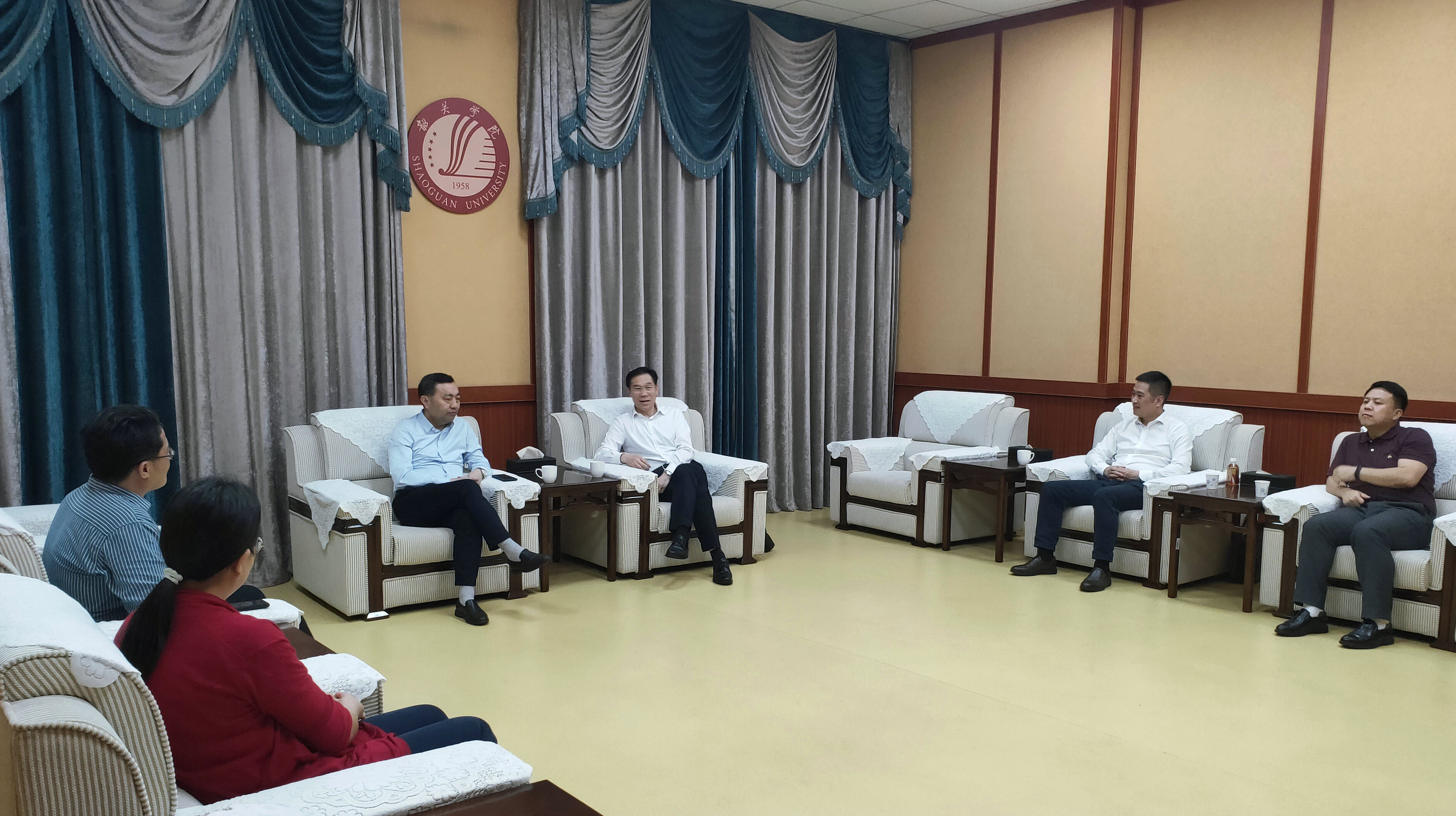 4月14日,华南农业大学党委副书记邓国安率队到我校交流对口帮扶工作。我校副校长吴善添,华南农业大学对口帮扶韶关学院工作队队长陈志远热情接待邓国安一行。