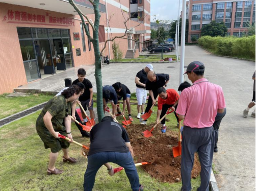 心系母校,以木传情。在庆祝毕业40周年的特别日子里,即7月5日,1984届韶关师专体育系毕业生向学校捐赠了2株红果冬青树,并亲自将其种植在知行区金竹苑社区绿地草坪上。他们以捐赠树木的方式,报答母校的培育之恩,为母校增添一抹绿色。体育学院党委书记陈星潭、院长胡永红、党委副书记郑文芳、党委组织员袁琦、辅导员廖海丹、高波及在校学生代表共同参加了捐树活动。