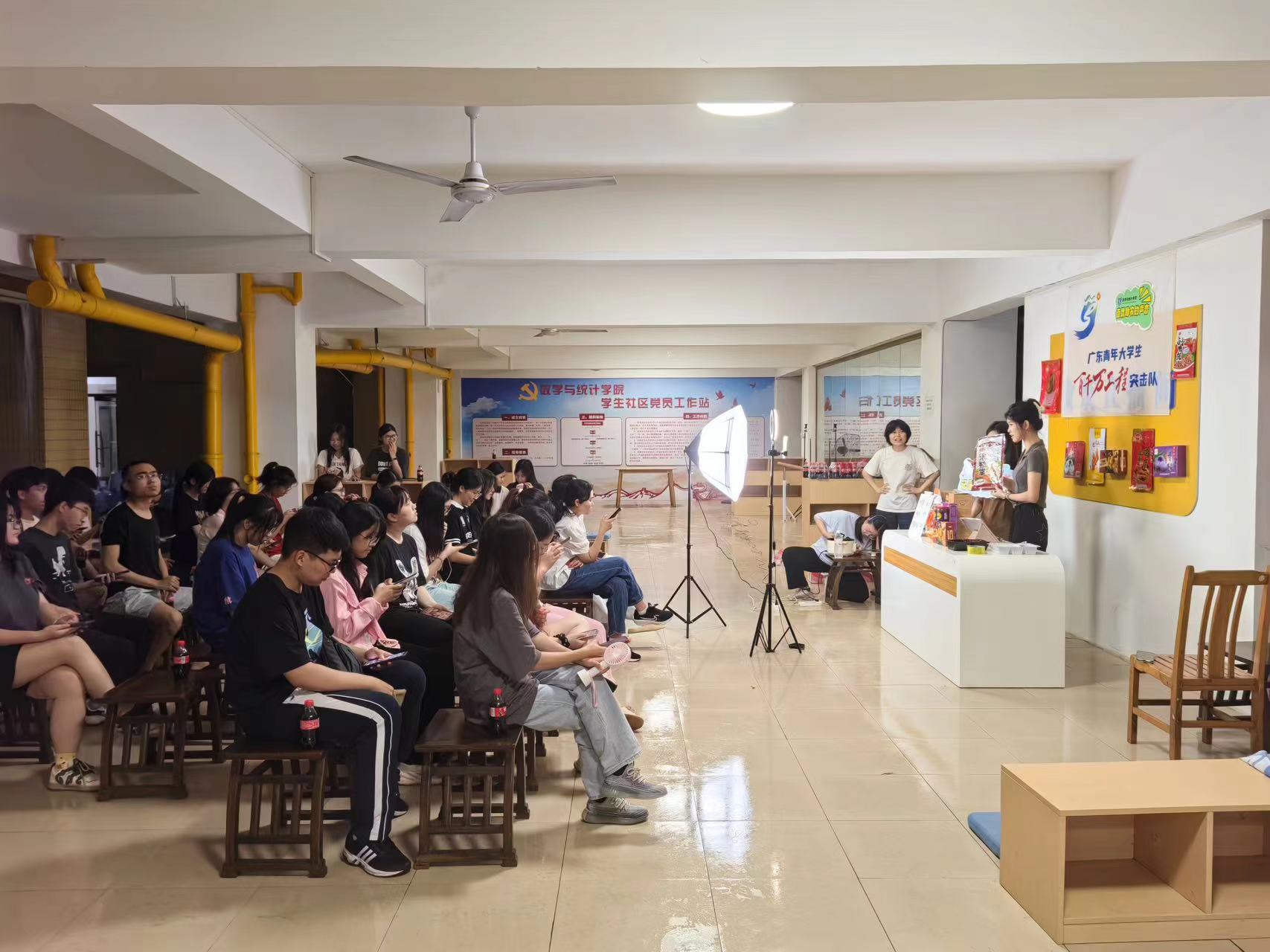 为解决各县镇村和农产品商家的实际需求,我校统筹组织参赛队伍组成“百千万工程”直播专项突击队,建立结对共建关系,化身农特产品“代言人”,让农特产品搭上“直播电商快车”,以青春力量为引擎,让“助农直播”结出更多硕果。