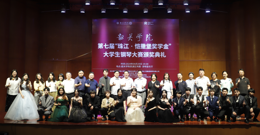 4月29日晚,韶关学院第七届“珠江•恺撒堡奖学金”大学生钢琴大赛颁奖音乐会在伟霖•泽明音乐厅顺利举办,广州珠江恺撒堡钢琴有限公司党委书记、董事长徐刚,广州珠江恺撒堡钢琴有限公司销售部业务经理卢冠辉,韶关珠江琴行总经理李子俊,音乐与舞蹈学院全体领导班子成员,以及师生180多人参加颁奖音乐会。