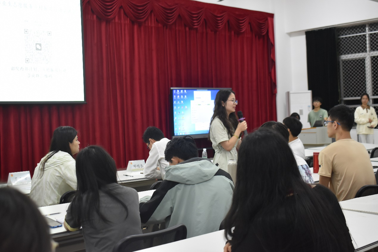 潘碧铃从服务岗位、服务方向和政策保障给学生代表详细解读了西部计划和广东高校毕业生志愿服务乡村振兴行动项目,并现场为学生进行了答疑。