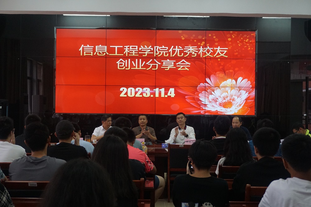 11月4日下午,信息工程学院在明德区才德楼A203会议室举行优秀校友分享会。本次分享会特邀了广州协跃软件科技有限公司总经理李飞和深圳市桑博文化发展有限公司董事长林锐超两位优秀校友主讲,分享他们精彩的创业经历。学院党委副书记(主持工作)叶灯洲主持会议,副院长袁辉勇及100多名学生代表参加了分享会。
