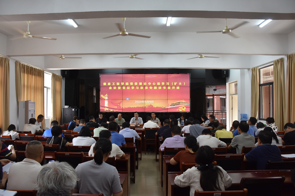 5月8日,信息工程学院在才德楼A座203室召开党委理论学习中心组学习(扩大)会议暨党纪学习教育专题读书班开班仪式。学院领导和全体党员参加会议。会议由学院党委副书记(主持工作)叶灯洲主持。