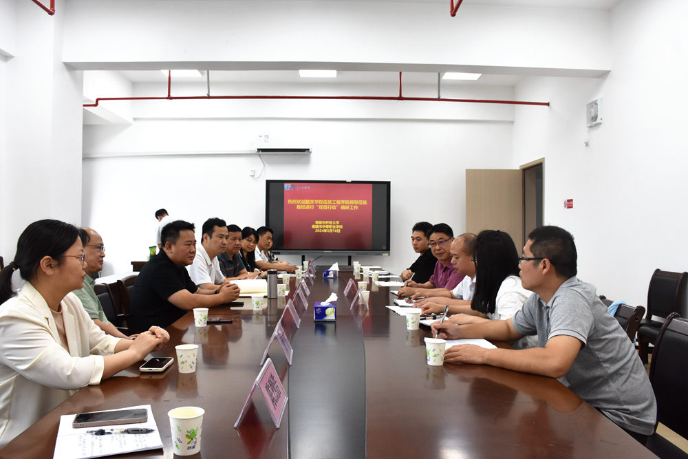 南雄中等职业学校党总支副书记郭小平对苗德成一行的到来表示热烈的欢迎,并介绍了其建校情况、办学规模、学生情况、竞赛情况等。他希望信息工程学院能够在学生竞赛、计算机等级考试等相关方面给予专业的培训指导,提高中职学生的计算机等级考试通过率与比赛获奖率,促进学生全面发展。