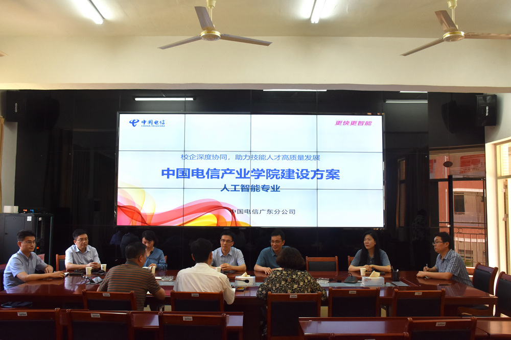 为促进校企共建,推动毕业生就业,提高就业质量,5月14日,广东电信教育行业总监李意娟、韶关电信政企部总监许先松、韶关电信城区分公司总经理刘循球等一行7人应邀来信息工程学院交流。信息工程学院院长苗德成、党委副书记(主持工作)叶灯洲、教授毛伊敏参加了此次交流会议。会议由苗德成主持。