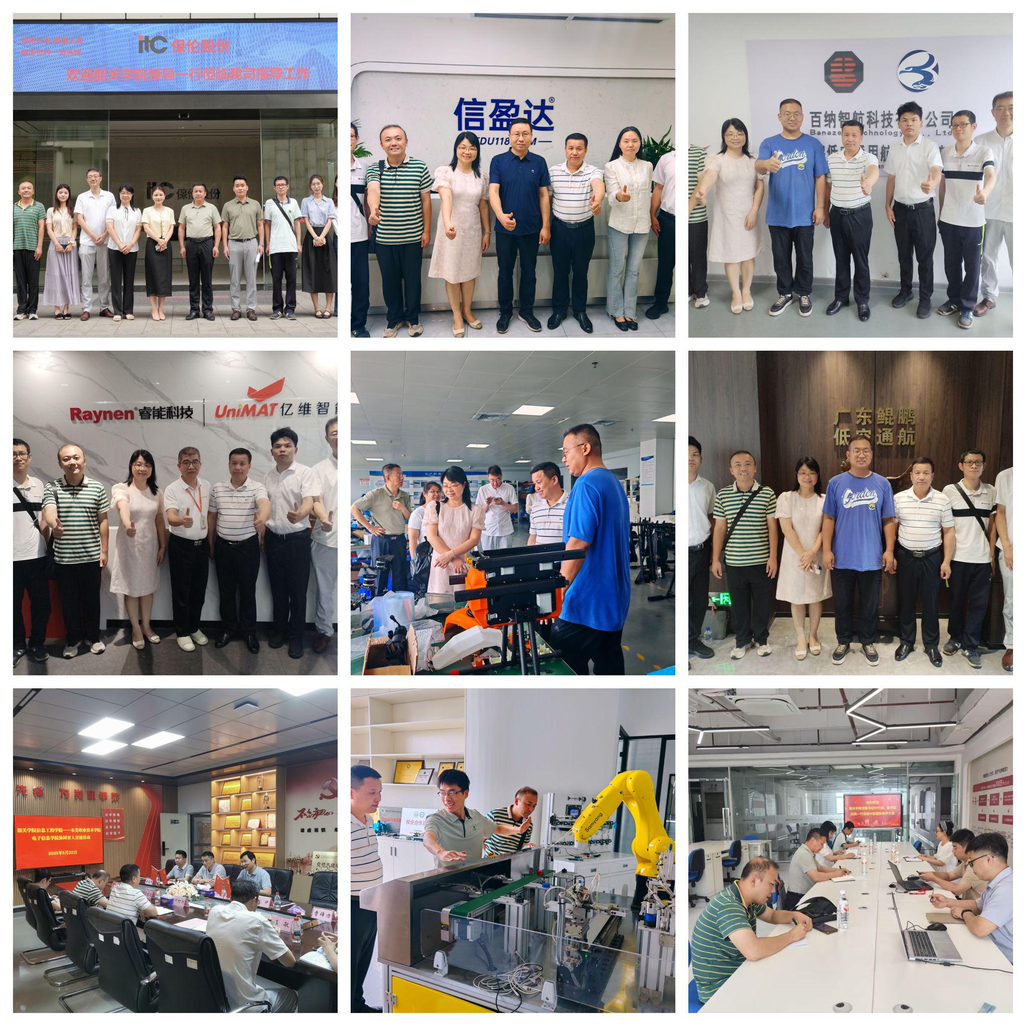 5月22日至23日,信息工程学院党委书记叶灯洲、副书记刘英一行 5 人,前往东莞、广州两地,密集走访百纳智航、亿维智能、信盈达、保伦股份等 7 家企业,开展访企拓岗专项行动,并与东莞职业技术学院电子信息学院进行深入交流。