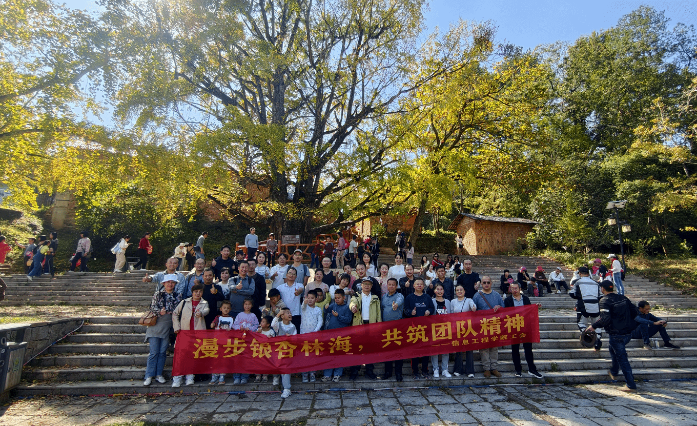 金秋送爽,银杏染黄。为丰富教职工精神文化生活,缓解工作压力,深化团队情感联结,11月15日,信息工程学院工会组织全院教职工前往南雄坪田银杏森林公园,开展以“漫步银杏林海,共筑团队精神”为主题的工会活动。在层林尽染的秋日盛景中,教职工们放松身心、交流互动,共同感受自然与人文的双重魅力。