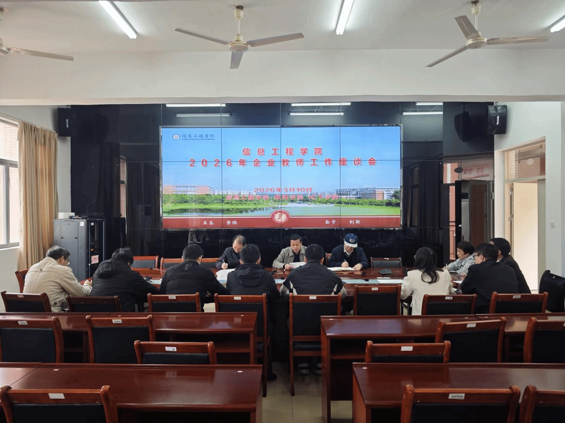 3月10日,为进一步强化校企协同育人机制,规范企业驻校教师教学管理,提升人才培养质量,推动教育链、人才链与产业链、创新链深度融合,信息工程学院召开了驻校企业教师座谈会。学院党委书记叶灯洲主持会议,副院长李丹峰、院长助理李文全及全体企业驻校教师参加会议。